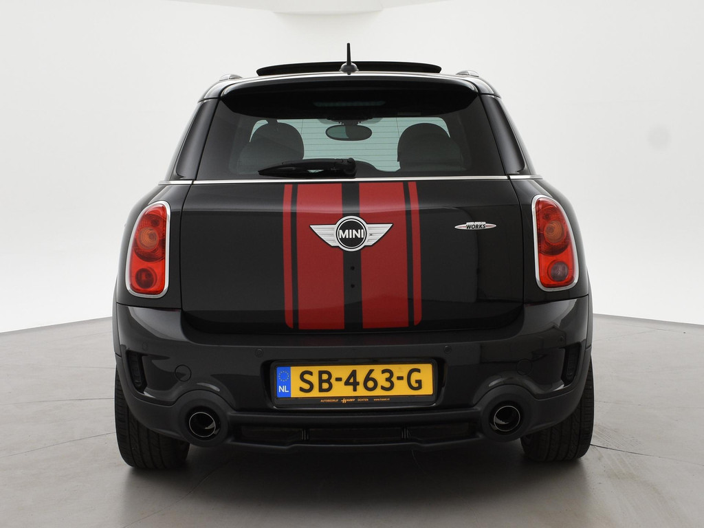 Mini Countryman 1.6 John Cooper Works ALL4 Vierwielaandrijving, 218 PK Chili automaat, Zeer complete uitvoering met veel leuke opties en in nette staat, Elektrisch panorama-dak, Harman Kardon premium sound, Volledig leder interieur met stoelverwarming, Sfeerverlichting met verschillende kleuren, Navigatiesysteem met kaartweergave, Dubbele sportuitlaat, Cruise control, Climate control, Bluetooth telefoonverbinding met audiostreaming, Xenon verlichting, Carbon delen exterieur.