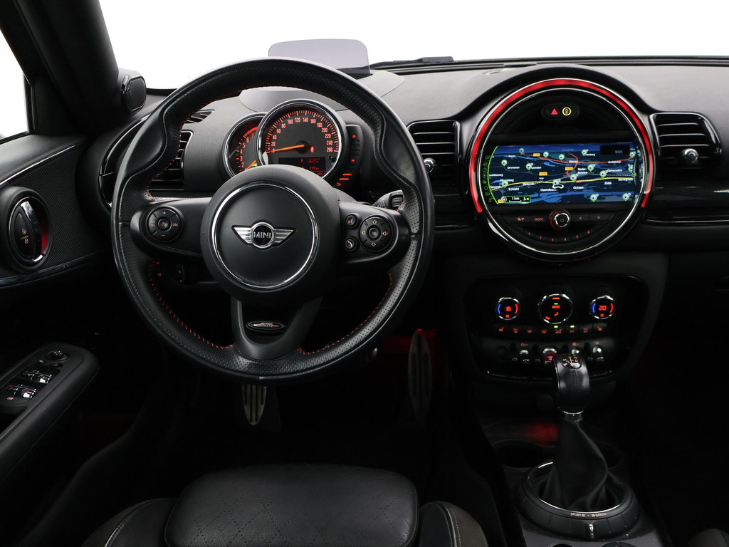 Origineel Nederlandse Clubman Cooper S 2.0 4-cilinder 192 PK Automaat in het Midnight Black metallic met mat zwart dak, Panorama schuif/kanteldak, Sportstoelen leder, Stoelverwarming, Elektrische stoelverstelling links en rechts, Geheugenfunctie op de bestuurdersstoel, Head-up display, Elektronisch verwarmde voorruit, Privacy glass, 19 inch lichtmetalen velgen, Full LED koplampen, LED dagrijverlichting, LED achterlichten, Bluetooth met audiostreaming, Achteruitrijcamera, Harman/Kardon premium sound, Climate control, LED Mistlampen, Navigatie Professional breedbeeld, Zwarte hemelbekleding, Onderhoudshistorie compleet digitaal bijgehouden, Sfeerverlichting interieur met verschillende kleuren.