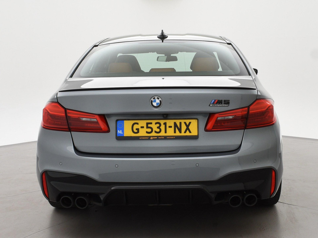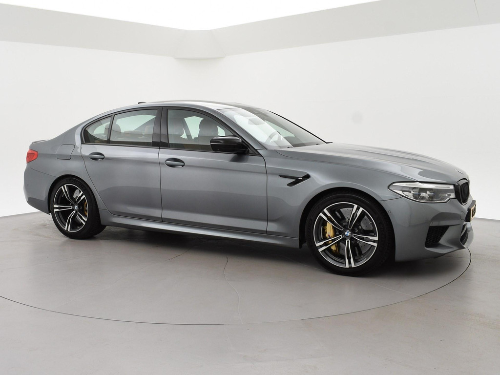 Origineel Nederlandse M5 Competition, BTW verrekenbaar, RDW nieuwprijs 206.235 euro, 4.4 V8 Bi-Turbo 625 PK automaat met vierwielaandrijving in het BlueStone metallic met Aragon Braun leder M sportinterieur met verlichte M logo's in de stoelen, Massagefunctie, Stoelventilatie, Stoelverwarming voor + achterin, Keramische ramen, Bowers & Wilkins High End Audio, M-sportuitlaat, Rear Entertainment originele schermen achterin, Laser LED koplampen, Zonneschermen achterin, 360 graden surround view camerasysteem, Driving Assistant Plus met adaptive cruise control en actieve lijnassistentie, Draadloze Apple Carplay / Android Auto, Sfeerverlichting met verschillende kleuren, Soft close sluitbekrachtiging portieren, Carbon dak, Head-up display, 4-zone climate control, Stuurwielverwarming, Geïntegreerde universele afstandsbediening, M-veiligheidsgordels, Ambient Air pakket, Draadloze telefoonlader, BMW gebarenbesturing.