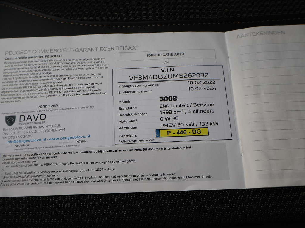 Origineel Nederlandse auto, GT uitvoering, HYbrid 225 plug-in hybrid 1.6 met 225 PK vermogen en automaat in Noir Perla Negra, BTW verrekenbaar, Volledig Peugeot dealer onderhouden, Trekhaak, Stoelverwarming, Achteruitrijcamera, Navigatie, Virtual cockpit digitale tellers, Apple Carplay / Android Auto appstreaming Google Maps, Flitsmeister, Whatsapp etc, Adaptive cruise control, 18 inch lichtmetalen velgen, Climate control, Privacy glass, Full LED koplampen, Elektrische achterklep, LED achterlichten, DAB+ Digitale radio, Sfeervelrichting interieur.
