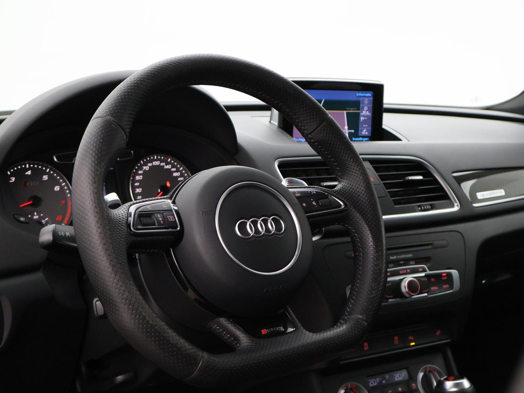 RS Q3 2.5 TFSI 310 PK Quattro automaat met 7 versnellingen, Daytona grijs metallic, 20 inch lichtmetalen velgen, Bose speakers met verlichte speakerranden, Zwart volledig leder sportinterieur met stoelverwarming en elektrische stoelverstelling, Panorama schuif/kanteldak, LED dagrijverlichting en Xenon koplampen, DAB+ Digitale radio, Navigatie, Privacy glass, Bluetooth telefoon + audiostreaming, Zwarte hemelbekleding, Zwarte remklauwen, Flat bottom sportstuurwiel, Aluminium pedalen, Parkeersensoren voor + achter, Elektronisch kinderslot, Elektrisch inklapbare buitenspiegels, Dimlichten automatisch, LED achterlichten, Carbon dashboard inleg. In 05-2022 een automaat revisie gehad met o.a. nieuwe koppeling factuur van 2480 euro aanwezig.