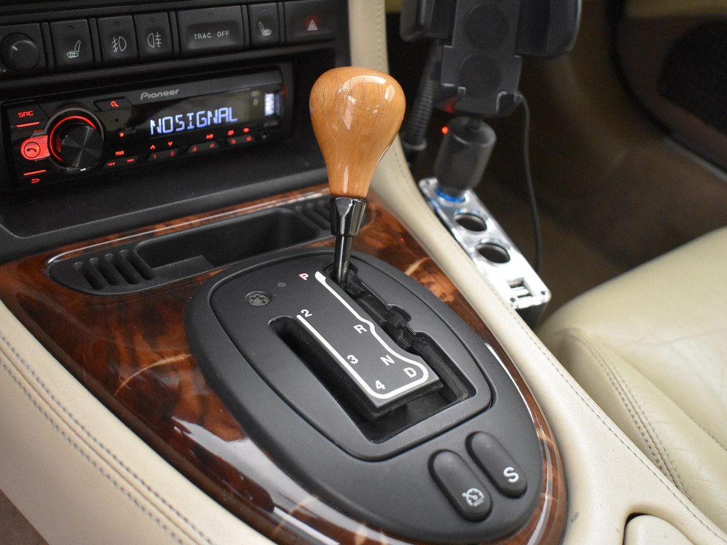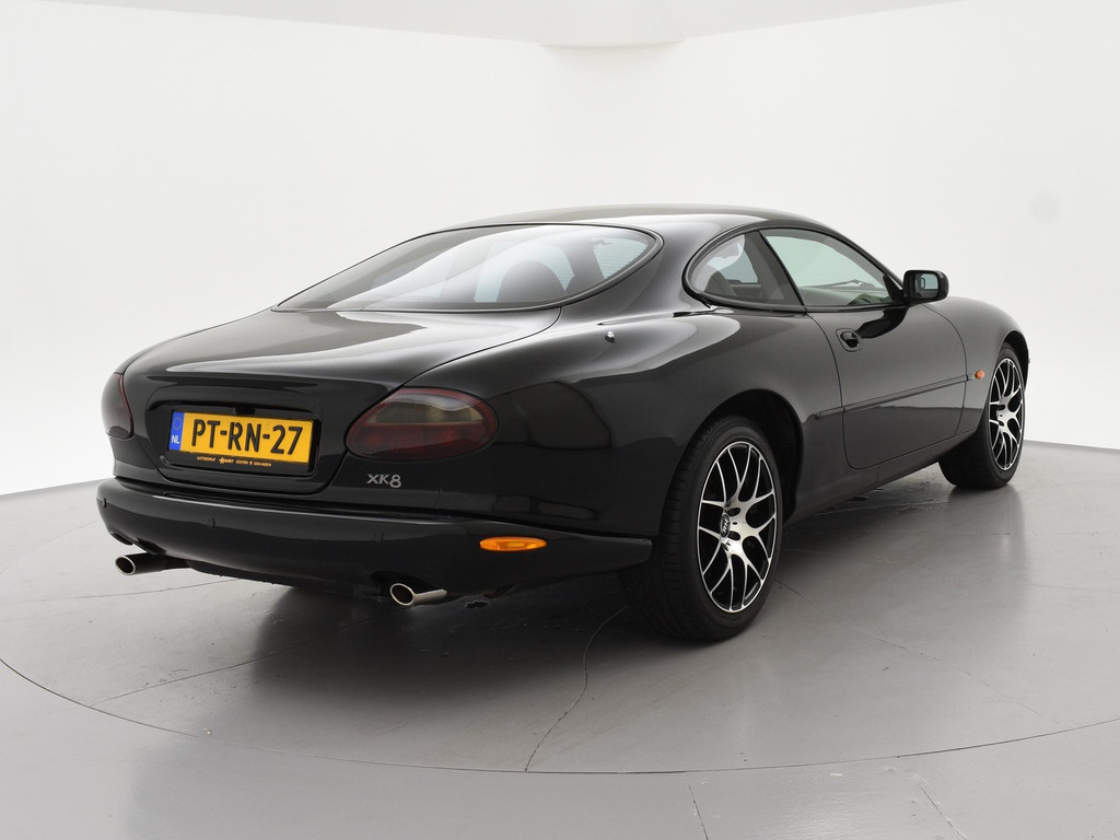 XK8 4.0 V8 van 10-1996, vanaf 11-1996 op Nederlands kenteken dus nieuw in Nederland in gebruik genomen in 1996, alleen vier weken een Buitenlandse registratie gehad. Zwart met beige interieur, Slechts 180.372 km gereden. Wij verkopen de auto onder zo meeneem condities. Wat in ieder geval bij ons bekend is: melding storing stabiliteitssysteem, storing traction control, zie foto's. De binnenspiegel zit een andere spiegel overheen met een achteruitrijcamera en dashcam / camera voor. De auto heeft 18 inch lichtmetalen velgen, Rode remklauwen, Elektronisch verwarmde voorruit, Elektrische stoel- en stuurverstelling met geheugen, Climate control, Cruise control, Leder interieur met stoelverwarming, Hout/leder stuurwiel, Houtinleg dashboard, DAB+ radio van Pioneer, JBL speakers.