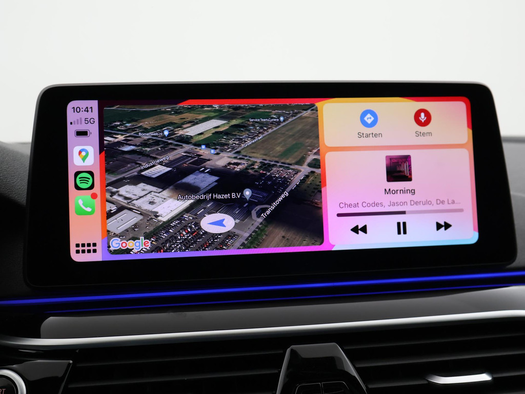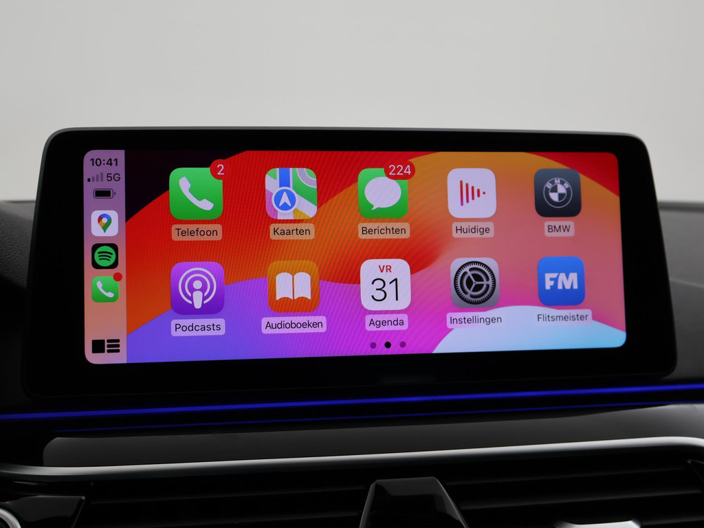 540i met de 3.0 benzine 6-cilinder lijnmotor met 333 PK en 8-traps automaat van van bouwjaar 2022 dus de allerlaatste generatie 5-serie echte 6-cilinder benzinemotor(zonder hybride), want deze zijn nu niet meer leverbaar. BTW verrekenbaar, prijs is inclusief BTW, M-Sport uitvoering met M-sport onderstel en M-sport aerodynamica pakket, Sophistograu metallic exterieurkleur, Interieur Nappa leder exclusief schwarz, Bijzonder complete uitvoering met adaptive cruise control inclusief actieve stuurassistentie (Assisted Driving), Laser LED koplampen (de meest geavanceerde koplampen leverbaar), Ambiance sfeerverlichting met verschillende kleuren en 2 kleurcombinaties, Draadloze Apple Carplay beeldvullend breedbeeld met appstreaming Google Maps, Flitsmeister, Spotify, Whatsapp etc, Elektrische stoel- en stuurverstelling met geheugen, Zwarte hemelbekleding, Elektrisch schuif/kanteldak, Comfort access keyless-entry, Soft-close sluitbekrachtiging portieren, Achteruitrijcamera, Head-up display, Navigatie Professional breedbeeld touch-screen, BMW Live Cockpit Professional digitale tellers, Privacy glass, Hoogglans zwarte raamlijsten, Dubbele uitlaat, DAB+ Digitale radio, Touch-screen Climate control + Stoelverwarming, Verkeersbordenherkenning, Dodehoek assistentie, Lijnassistentie, Elektrisch inklapbare buitenspiegels, 20 inch M-sportvelgen breedset met bredere velgen achter dan voor met Run Flat banden, M-Sportstuurwiel, Draadloze telefoonlader, 4-zone climate control met aparte bediening achterin, USB C voor- en achterin, Alarm klasse 3 vanaf fabriek + klasse 5 Voertuigvolgsysteem van Moving Intelligence.