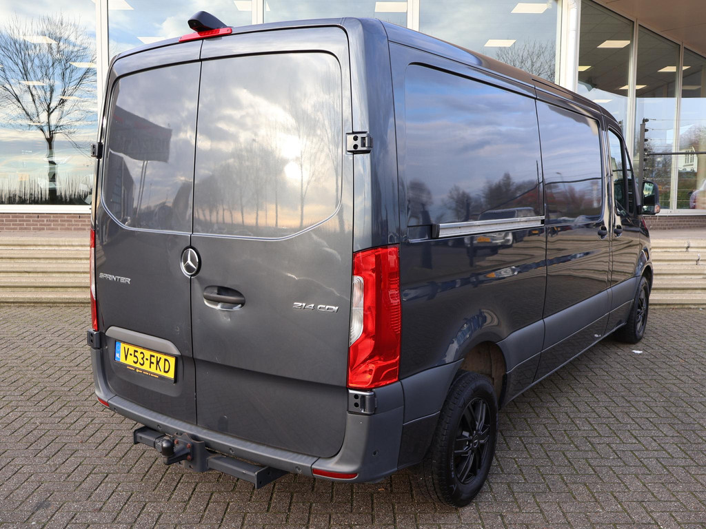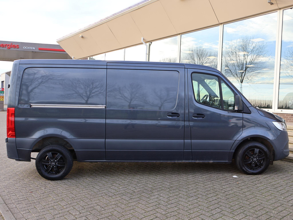 Sprinter 2.2 CDI 143 PK met 6 versnellingen in het Tenorietgrijs metallic met 2 schuifdeuren, L2H1 verlengde uitvoering, Euro 6 emissienorm, 360 graden surround view camerasysteem met camera's voor- en achter en zijcamera's met aparte stoepweergave of trekhaak ingezoomde modus, Navigatie MBUX, Apple Carplay / Android Auto appstreaming Google Maps, Spotify, Flitsmeister, Whatsapp etc, Elektrisch inklapbare buitenspiegels, Trekhaak, Dimlichten automatisch, Uitneembaar schot in de laadruimte, DAB+ Digitale radio, Audio stuurwielbediening, Airco met digitaal display, 330 cm laadlengte in de laadruimte.