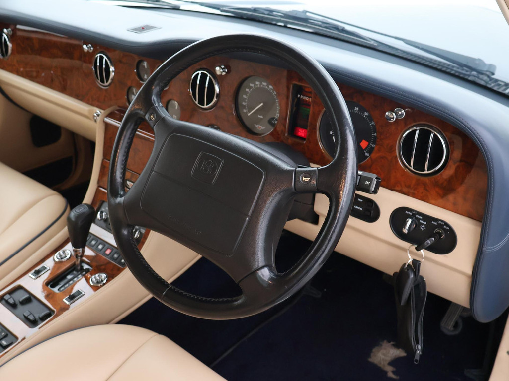 Bentley Turbo R 6.75 V8 Turbo, Donkerblauw met beige leder, Rechtsgestuurd, Elektrische stoelverstelling met geheugen, Automatische airconditioning, Houtinleg dashboard, Stoelverwarming met 2 standen.