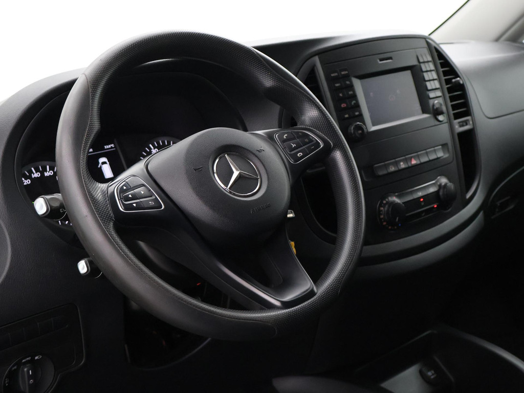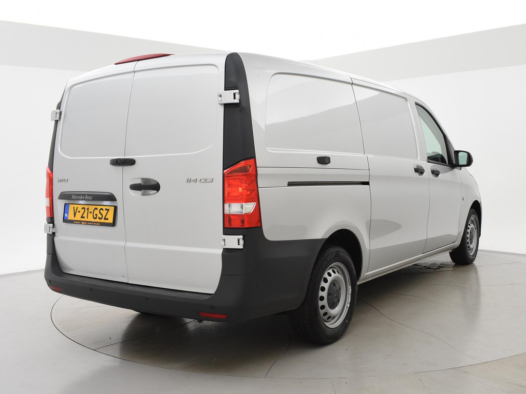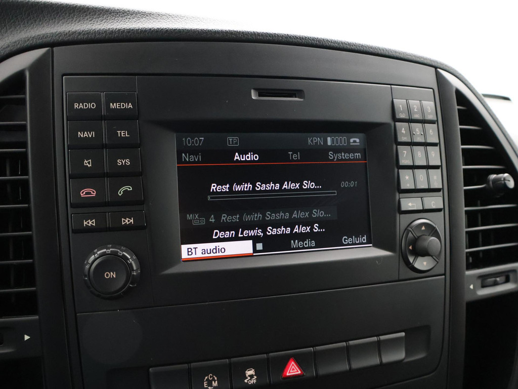 Vito 114 CDI 136 PK Automaat, Euro 6 Emissienorm, Verlengde uitvoering, 2 zwart (kunst)lederen comfortstoelen met armleuningen, Zilvergrijs metallic, LED koplampen, Cruise control, Navigatiesysteem met kaartweergave, Airco, Bluetooth telefoonverbinding met audiostreaming, Multifunctioneel stuurwiel met schakelflippers, Prijs is exclusief BTW.