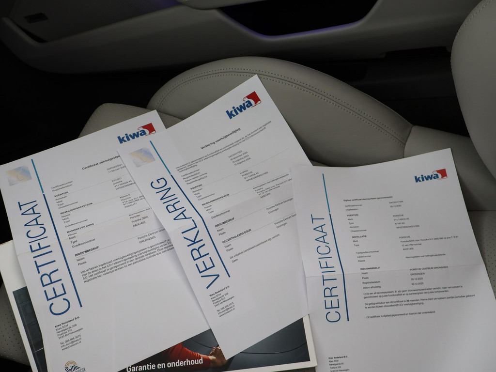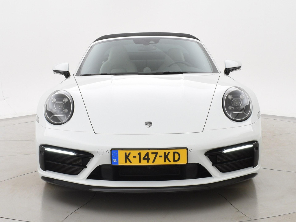 Origineel Nederlandse 992 911 Targa 3.0 4S 450 PK PDK automaat in het Carrarawit metallic met Leisteen Grijs met Krijt leder interieur, Vierwielaandrijving, Slechts 17.979 km gereden, Sportuitlaat origineel vanaf fabriek, 360 graden camerasysteem, SportDesign bumpers met afwerking in hoogglans zwart, Bose premium sound, Sport Chronopakket, Lederen interieurdelen, Sfeerverlichting interieur, 20 inch lichtmetalen velgen breedset (305 achter, 245 voor), Verwarmd stuurwiel, Rode remklauwen, Donker glas achter, Full LED koplampen, Draadloze Apple Carplay / Android Auto appstreaming Google Maps, Flitsmeister, Whatsapp etc, DAB+ Digitale radio, PASM adaptief onderstel, Cruise control, Deels digitale cockpit met navigatie kaartweergave, Navigatie breedbeeld touch-screen, Stoelverwarming, Elektrische stoelverstelling met geheugen, Parkeersensoren, Climate control, Elektrische spoiler, Porsche projectie op de straat, Zwart/grijs logo voor.