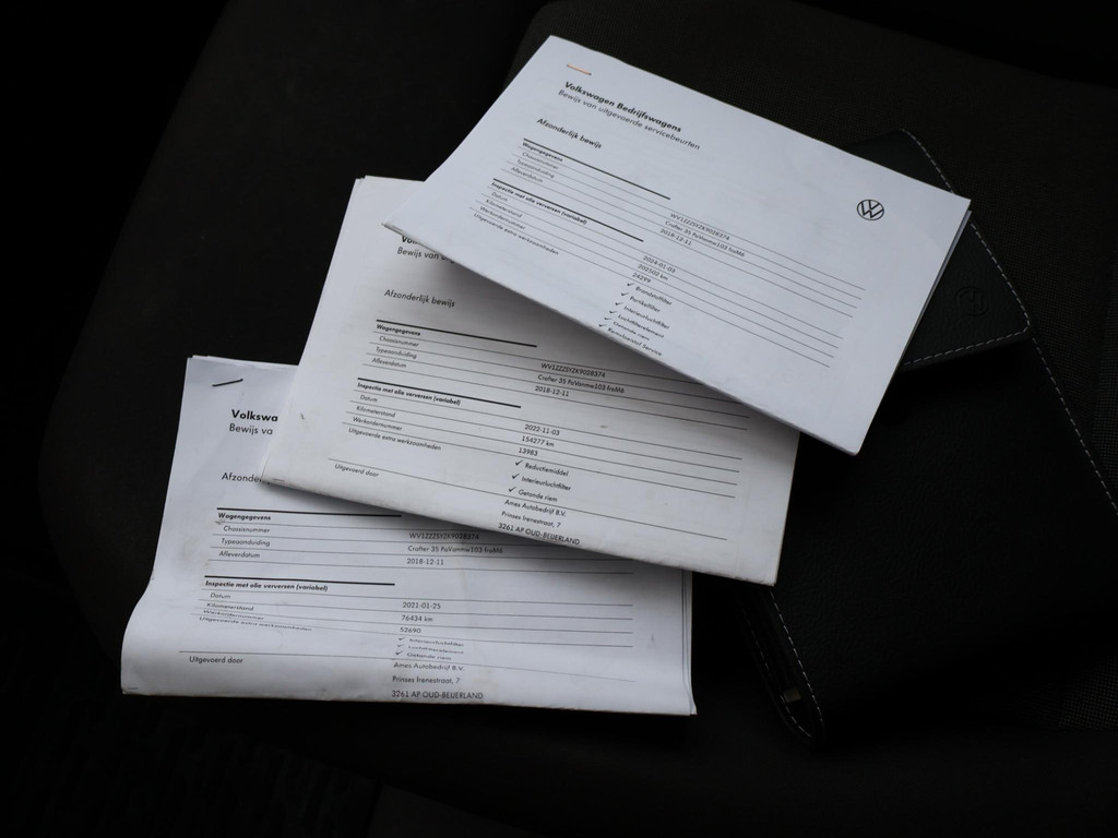 Crafter L3H3 2.0 TDI 140 PK met 6 versnellingen, 35 uitvoering met maximaal eigen gewicht 3500 kg en 3000 kg trekgewicht op kenteken, Volledig Volkswagen dealer onderhouden, historie aanwezig, Trekhaak, Lederen bestuurdersstoel met stoelverwarming, Navigatie, Apple Carplay / Android Auto appstreaming Google Maps, Flitsmeister, Whatsapp, Spotify etc, DAB+ digitale radio, Houten vloer, wandaftimmering laadruimte, Airco, 333 cm laadlengte, 177 cm breedte en 196 cm hoogte. Prijs is exclusief BTW.