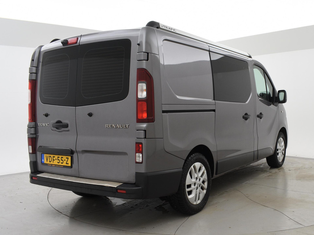 Enkel cabine Trafic 1.6 DCI 140 PK in het donkergrijs metallic met 17 inch lichtmetalen velgen, Touch-screen radio, Achteruitrijcamera, Bluetooth met audiostreaming, Cruise control, Airco, Dakrailing, Mistlampen, 3 zitplaatsen, Prijs is exclusief BTW.