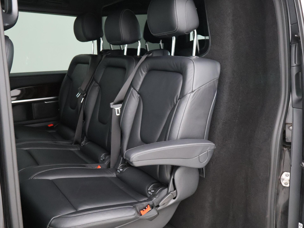 V-klasse 250d 190 PK Automaat dubbel cabine met 5 zitplaatsen, Extra Lang uitvoering L3, Origineel Nederlandse auto, Zwart met zwart leder interieur, Avantgarde Edition, 2 elektrische schuifdeuren + elektrische achterklep, 360 graden surround view camerasysteem, Burmester Premium sound, Full LED koplampen, LED achterlichten, 18 inch lichtmetalen velgen, Sfeerverlichting interieur met verschillende kleuren, Navigatie, Dodehoek assistentie, Lijnassistentie, Verkeersbordenherkenning, Armleuningen achterin, Dakrailing, Vloerbedekking, Zwarte hemelbekleding, 3 zone climate control met display en bediening achterin, Bluetooth met audiostreaming, Trekhaak met cameramodus voor de trekhaak,