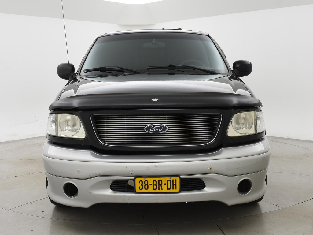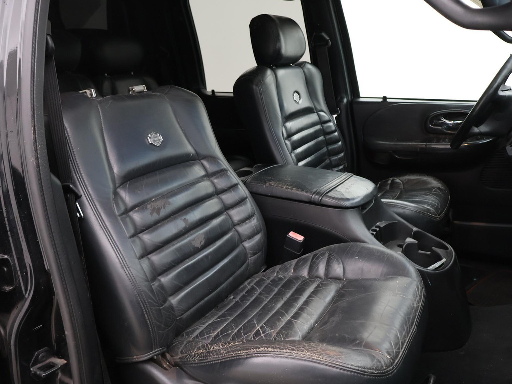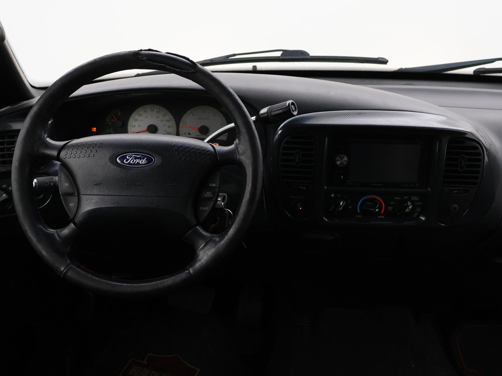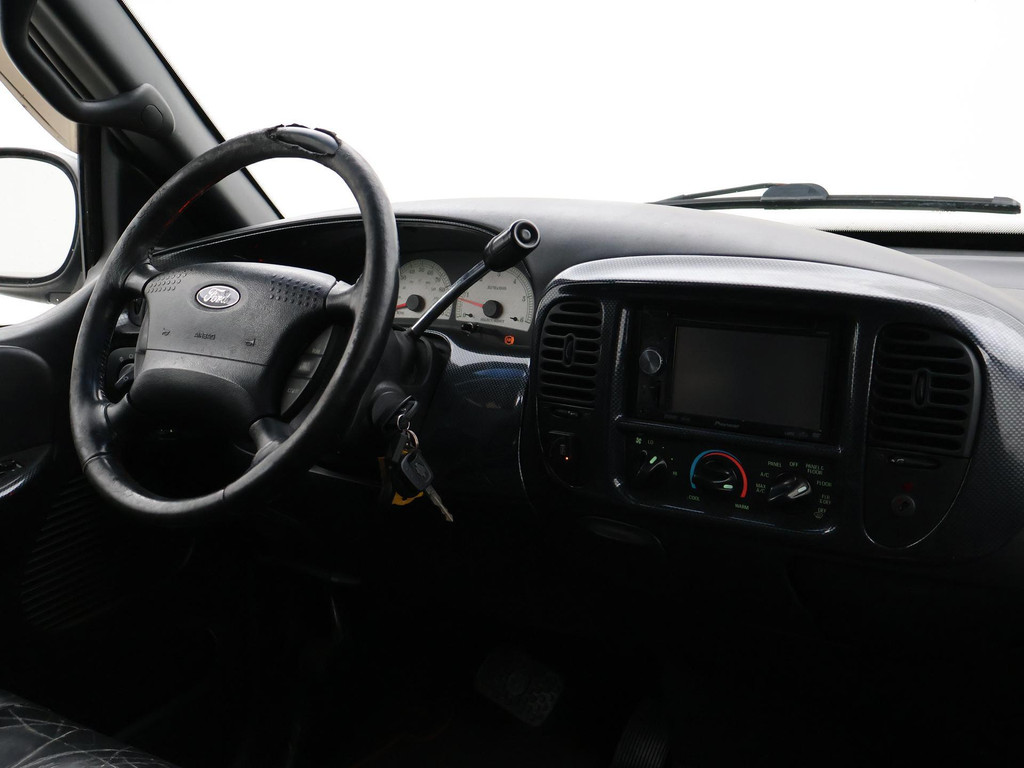 F150 Supercab dubbel cabine uitvoering in de Harley Davidson uitvoering met Bi-color zilver/zwart exterieurstyling en zwart leder interieur met Harley Davidson logo's, 133.020 mijlen gereden, Marge auto dus geen bijkomende BTW, 5.4 V8 benzinemotor met LPG installatie, Diverse roestplekken rondom, APK tot 19-12-2025. Hoofdsteun bijrijder afgebroken, Radio werkt niet, Youngtimer met aanschafwaarde bijtelling bij zakelijke aanschaf, Stoelverwarming, Schuif/kanteldak, Elektrische stoelverstelling, Cruise control, 20 inch lichtmetalen velgen, Airco, Hardtop over de laadruimte, Zwarte hemelbekleding, Trekhaak.