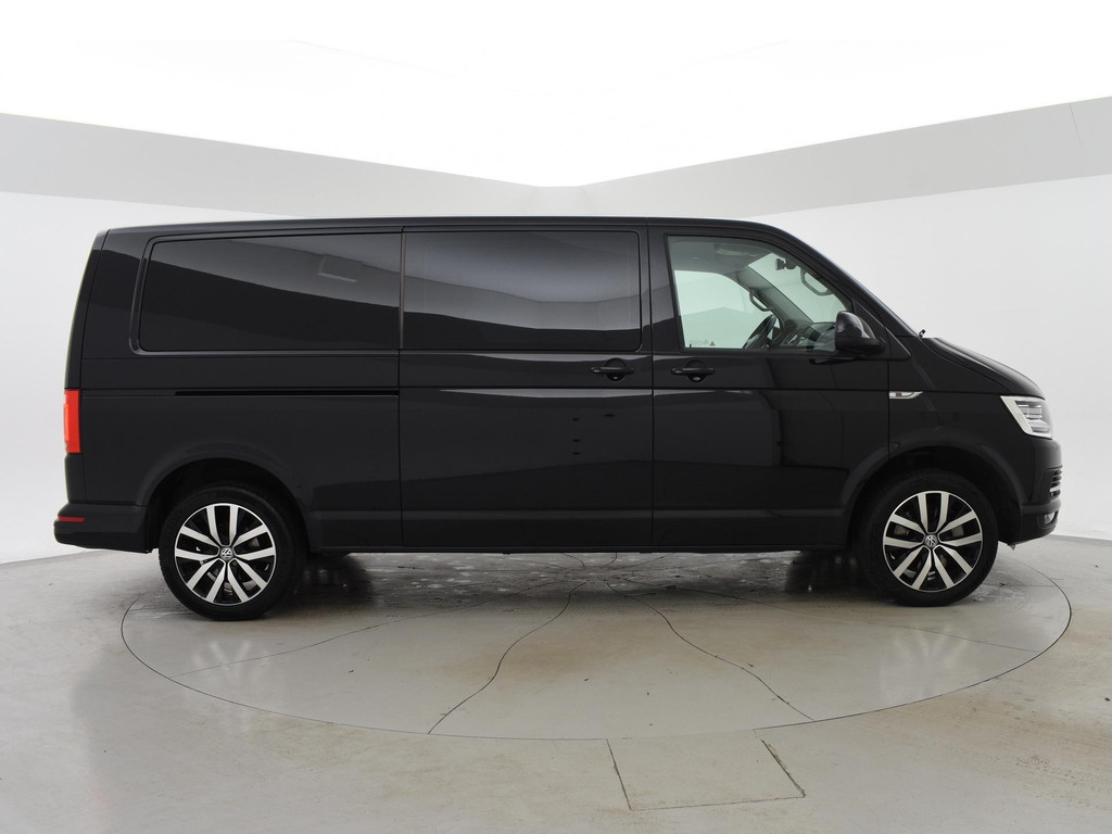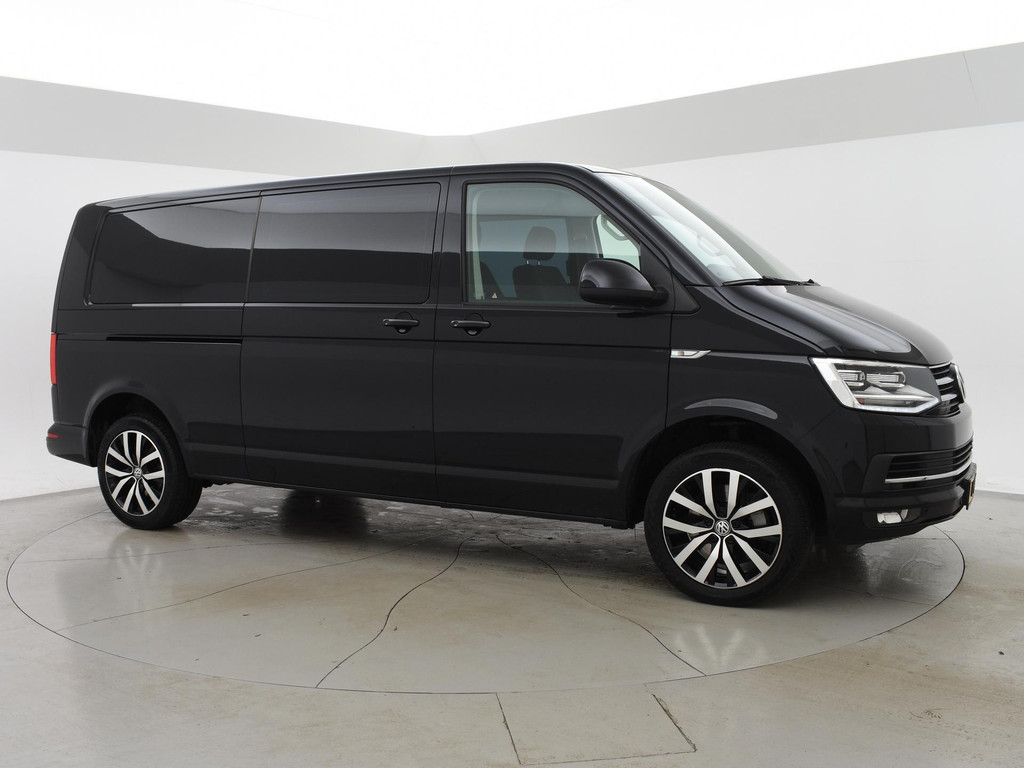 Verlengde L2H1 Transporter 2.0 TDI 204 PK DSG Automaat Highline Dubbel cabine met 5 zitplaatsen, Origineel Nederlandse en 1e eigenaar auto, Volledig Volkswagen dealer onderhouden, Deep Black Pearl effect, Comfortstoelen met armleuningen links en rechts, Full LED koplampen, LED achterlichten, Adaptive cruise control, 2 schuifdeuren, Apple Carplay / Android Auto appstreaming Google Maps, Flitsmeister, Spotify etc, Trekhaak met 2500 kg trekgewicht op kenteken, Elektronisch verwarmde voorruit, Achterklep met ruit, Parkeersensoren, 18 inch lichtmetalen velgen, Leder stuurwiel multifunctioneel, Navigatie touch-screen, Airco, Bumpers en buitenspiegels in carrosseriekleur, Bluetooth met audiostreaming, DAB Digitale radio, Houten laadvloer, Wandafwerking laadruimte, Prijs is exclusief BTW.