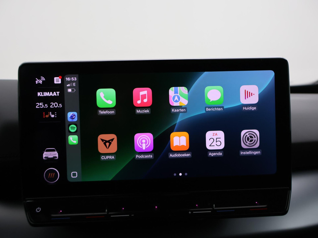 Volledig elektrische Cupra Bron 62 kWh van 12-2021, waardoor de bijtelling (bij zakelijke aanschaf) nog slechts 12% tot en met 31-12-2026. Origineel Nederlandse auto van de 1e eigenaar, BTW verrekenbaar, Adrenaline One uitvoering in het Quasar Grey metallic met koperkleurige accenten, 19 inch lichtmetalen velgen, Sfeerverlichting met verschillende kleuren, Stoelverwarming, Draadloze telefoonlader, Privacy glass, Full LED koplampen, LED achterlichten, Climate control, Navigatie touch-screen, Apple Carplay / Android Auto appstreaming Google Maps, Flitsmeister, Whatsapp etc, DAB+ Digitale radio, Leder stuurwiel multifunctioneel, Achteruitrijcamera.