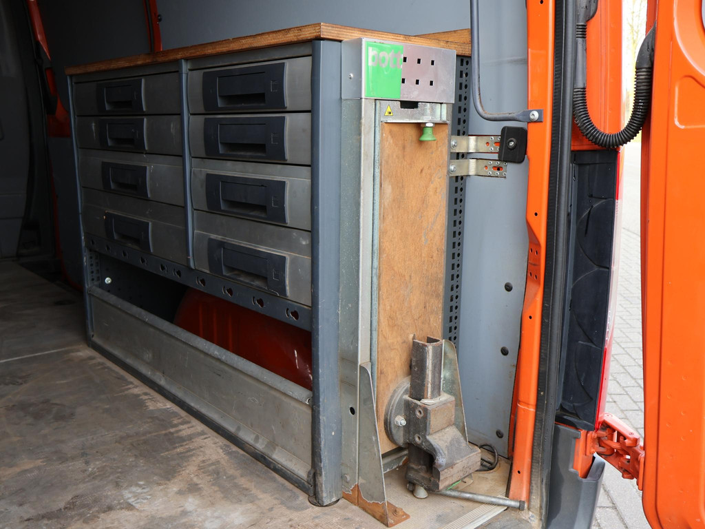 Sprinter L2H2 316 CDI Achterwielaangedreven 2.2 CDI 163 PK met 6 versnellingen en 3500 kg trekgewicht op kenteken, Gave oranje exterieurkleur, Comfort bestuurdersstoel met verlengbaar zitvlak, Achteruitrijcamera, Cruise control, Apple Carplay / Android Auto touch-screen MBUX systeem met appstreaming Google Maps navigatie, Flitsmeister, Spotify, Whatsapp etc, Airco met digitaal display, Standkachel in de laadruimte, Warmte werend voorruitfolie, Werkplaatsinrichting met kasten, lades en bankschroef, Opstap achter, Bluetooth telefoon met audiostreaming en stuurwielbediening, 2 oranje zwaailichten op het dak, Zeer goed onderhouden, Bij 203.000km grote beurt roetfilter vervangen, inlaatspruitstuk vervangen, uitlaat vervangen, remschijven en remblokken rondom vervangen, banden nog geen 10.000 km oud. Prijs is exclusief BTW.