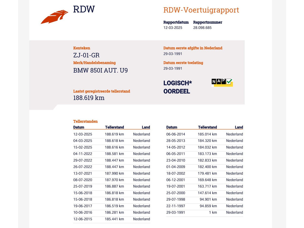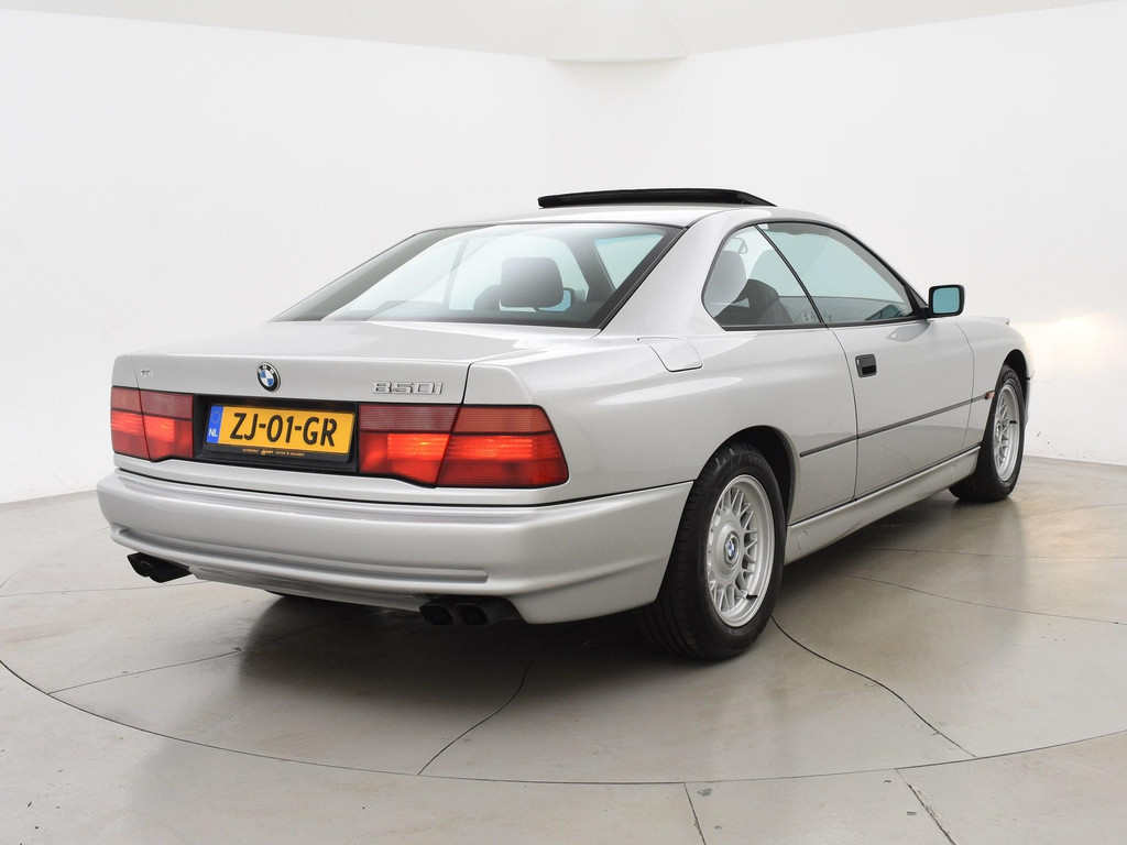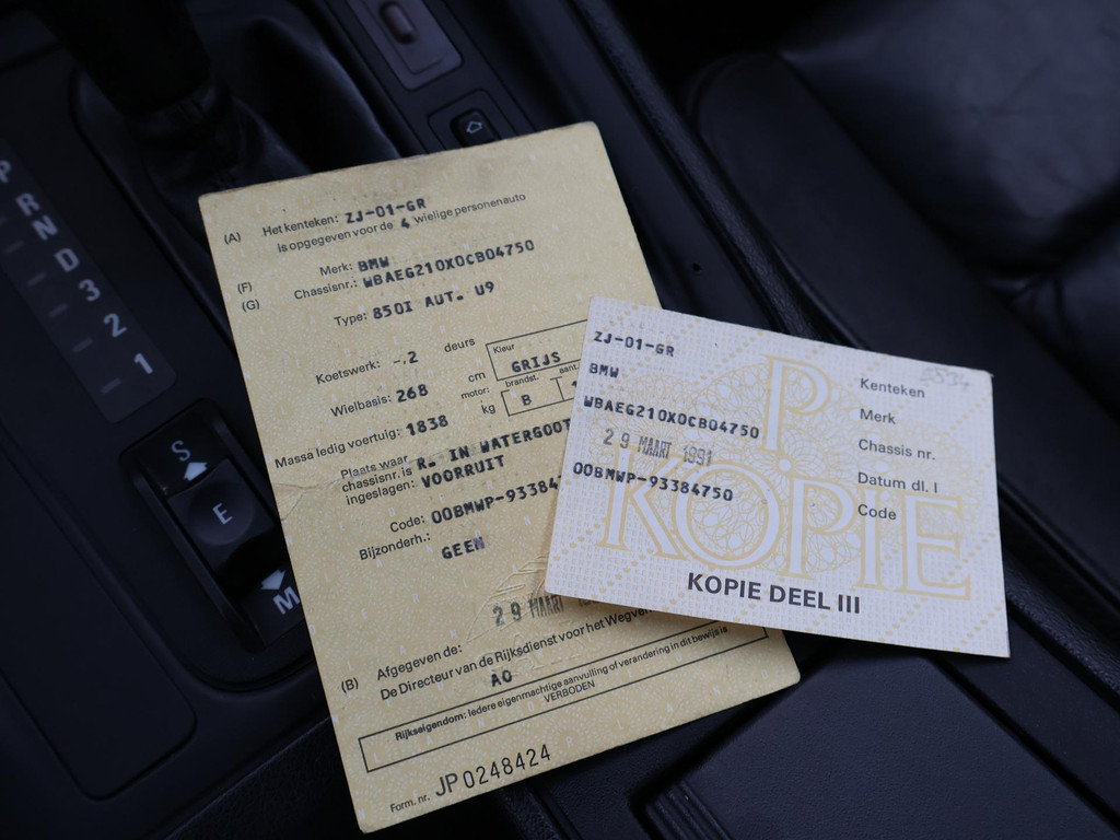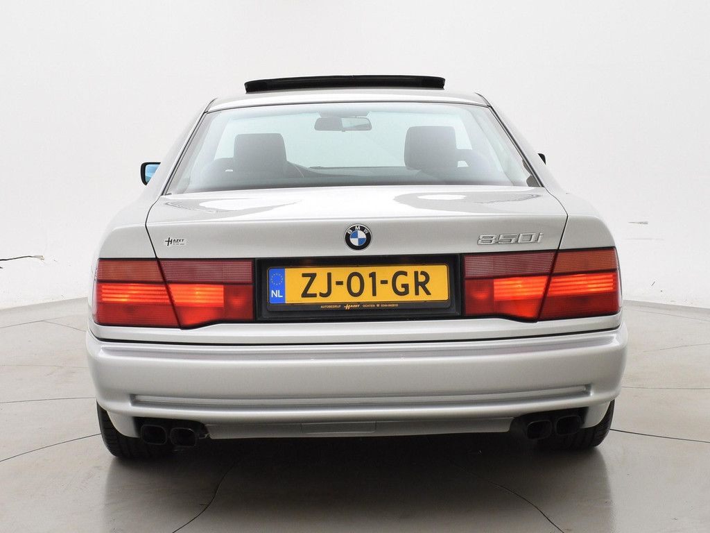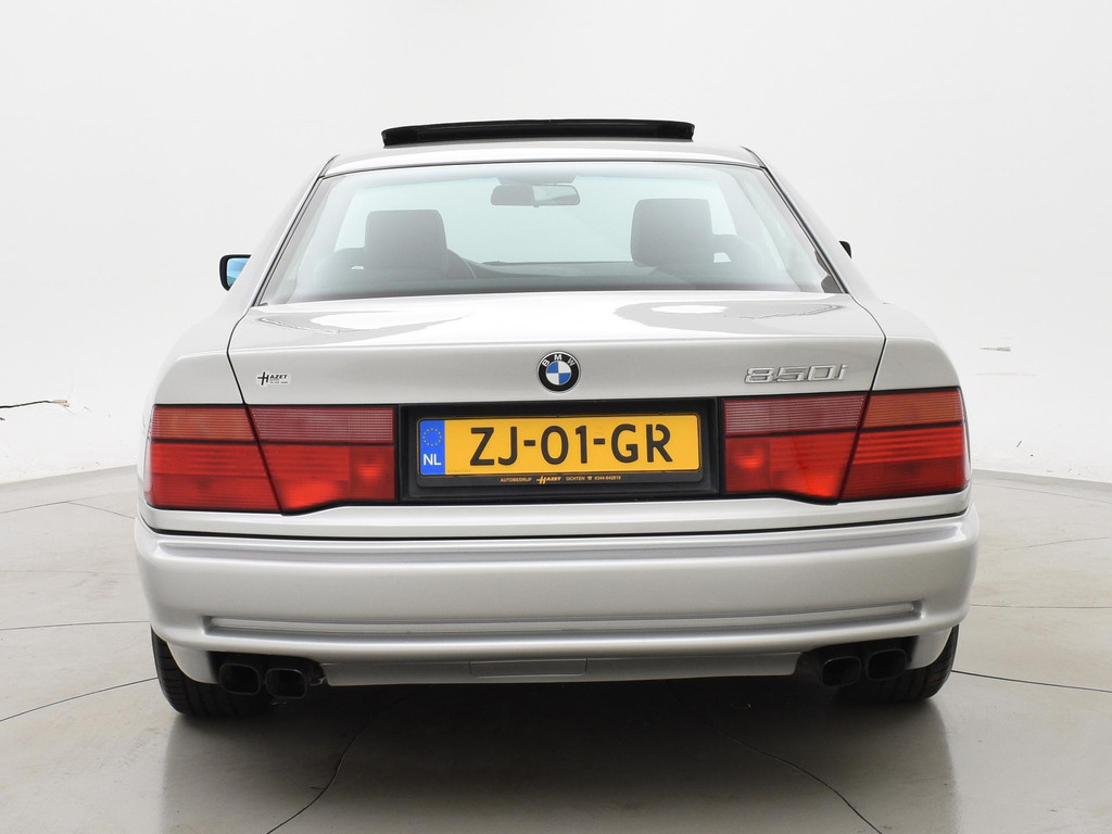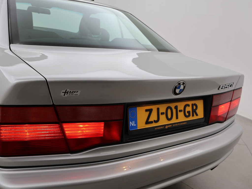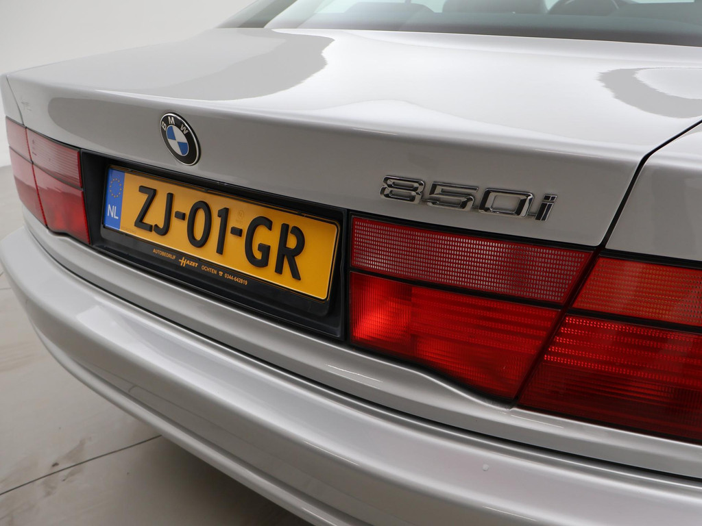 Unieke auto: Origineel Nederlandse BMW 850 Ci van 1991 met de originele boekjes compleet aanwezig, nieuw geleverd door BMW dealer Ad Smelt in Bussum, Uitgebreide NAP kilometerhistorie aanwezig met logisch oordeel, Sterling Silber metallic, 5.0 V12 motor met 299 PK vermogen en automaat, Zwart volledig leder interieur met elektrische stoelverstelling links en rechts, Geheugenfunctie op de bestuurdersstoel, Elektrisch verstelbaar stuurwiel, Elektrisch schuif/kanteldak, Elektrisch zonnescherm voor de achterruit, Climate control met links en rechts gescheiden temperatuur, BMW Bavaria C Business radio, 16 inch lichtmetalen velgen, 4 uitlaten, Alarm systeem met 2 afstandsbedieningen en certificaat + boekjes, Centrale deurvergrendeling op afstandsbediening, Elektrische ramen en spiegels, Boardcomputer, Leder stuurwiel, ASC, Koplampreinigingsinstallatie, Volwaardig reservewiel, APK tot 03-2027.