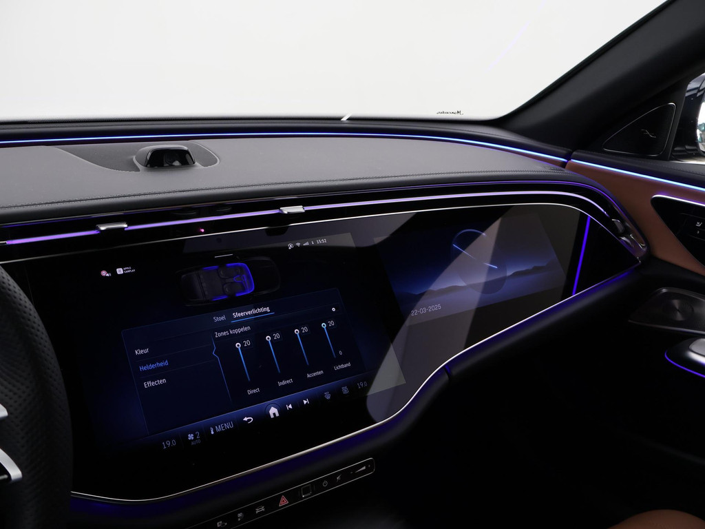 Origineel Nederlandse Mercedes-Benz E-klasse 300de 313 PK plug-in diesel hybrid van 2025, Amg-line Prestige Plus uitvoering, Zeer luxe uitvoering met een RDW nieuwprijs van €92.429, MBUX Hyperscreen compleet doorlopend multimediascherm, Nautic blauw metallic, Bruin leder interieur, Burmester premium sound, 360 Graden camera, Comfortstoelen elektrisch verstelbaar met geheugenstanden, Stoelverwarming voor + achterin, Stoelventilatie, Elektrisch uitklapbare trekhaak, Digital LED koplampen met LED dagrijverlichting, LED achterlichten, Elektrische achterklep, Draadloze apple carplay/Android auto met verschillende apps waaronder: Spotify, Whatsapp en Flitsmeister, Meesturende achteras, Digitale cockpit met verschillende thema's, Adaptieve cruise control met regelbare afstand op de voorganger, Sfeerverlichting interieur met verschillende kleuren en soundvisualisatie, DAB Digitale radio, Internet functie voor zowel het middelste mediascherm als het bijrijders mediascherm, Actieve spoor assistent, Actieve stuur assistent, Interieurbeveiliging, Standkachel, Automatische zitpositie, Navigatiesysteem met kaartweergave in alle 3 de mediaschermen, Elektrisch inklapbare buitenspiegels, Dodehoek detectie, Multifunctioneel leder stuurwiel met F1 schakelflippers, 20 Inch lichtmetalen velgen, Volledig leder interieur, BTW verrekenbaar.