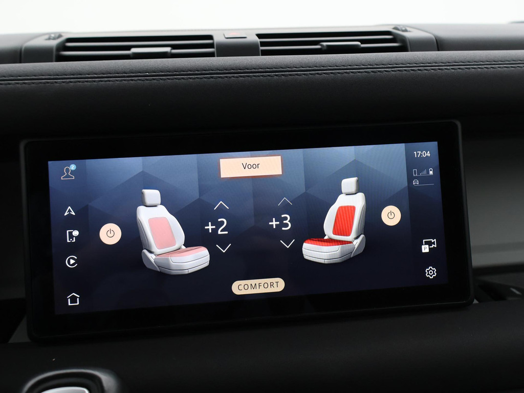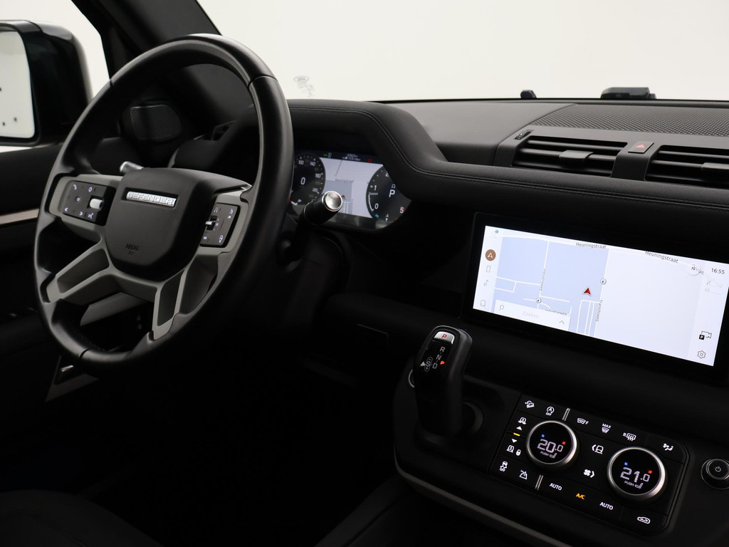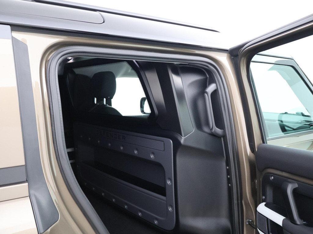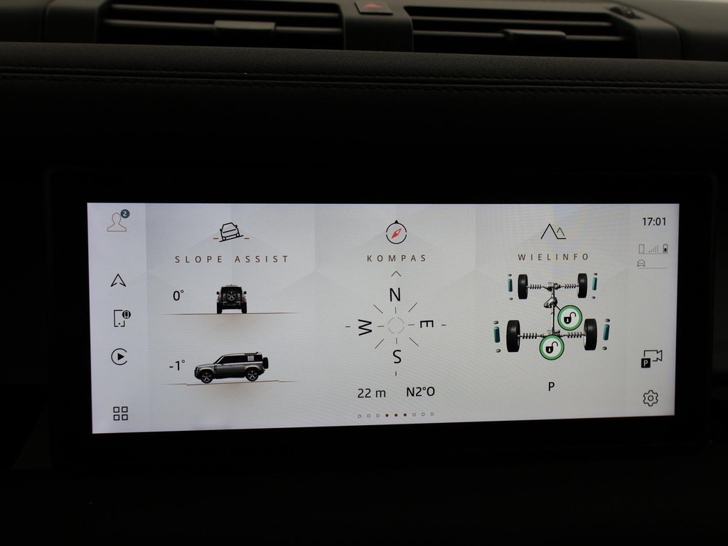 Defender 110 grijs kenteken met 2 zitplaatsen, Gondwana Stone Gloss exterieurkleur met zwart dak, zwarte spiegels en zwarte velgen, Panorama schuif/kanteldak, 360 graden camerasysteem, Stoelverwarming, Stuurwielverwarming, Koelkast in de middenarmsteun, Volledig elektrisch wegklapbare trekhaak met 3500 kg trekgewicht op kenteken, Luchtvering met regelbare rijhoogte, Keyless-entry en keyless-drive, Spiegel met achteruitrijcamera functie en spiegelfunctie, Meridian Premium sound, 19 inch lichtmetalen velgen, Full LED koplampen, LED achterlichten, Digitale cockpit met digitale tellers en navigatie kaartweergave + mediaweergave beeldvullende modus, Profiglass dubbel cabine ombouw met Defender inscriptie in het tussenschot, Draadloze Apple Carplay / Android Auto appstreaming Google Maps, Flitsmeister, Spotify etc, DAB+ Digitale radio, Lijnassistentie, Keyless-entry en keyless-drive, Draadloze telefoonlader, Botswaarschuwing, Cruise control, Elektronisch verwarmde voorruit, Climate control, USB 2 en USB C laders, D240 2.0D Ingenium 240 PK diesel automaat 4x4. Elektronisch sperdifferentieel achter met koppelverdeling dmv remmen (TVBB). Prijs is exclusief BTW.