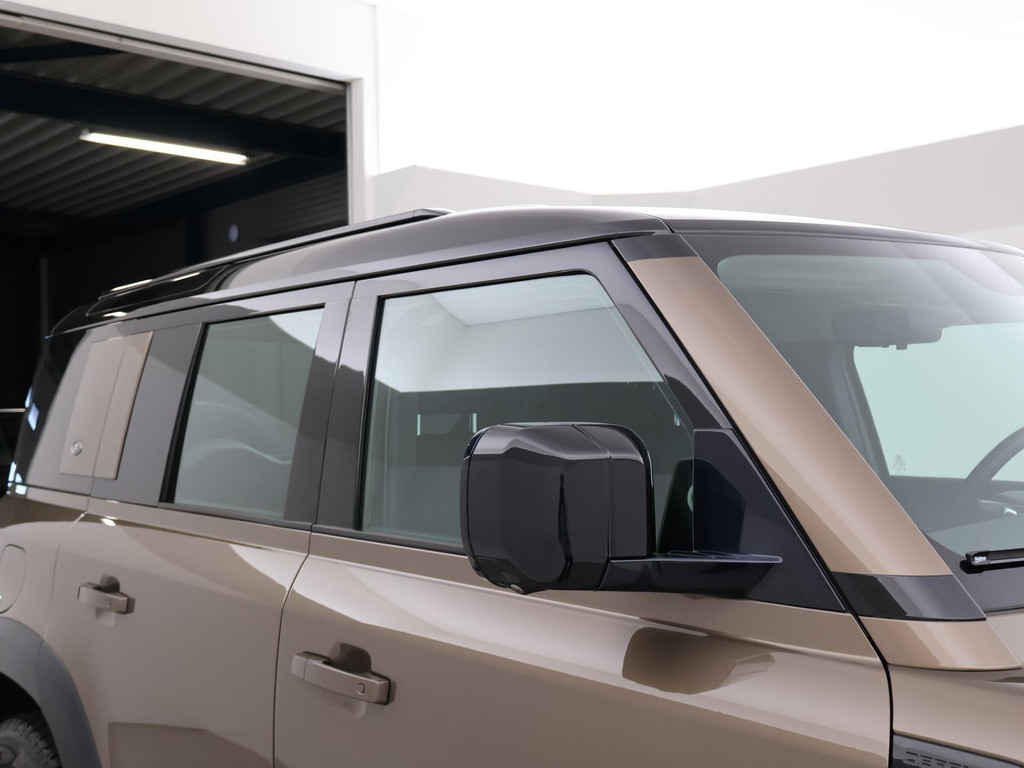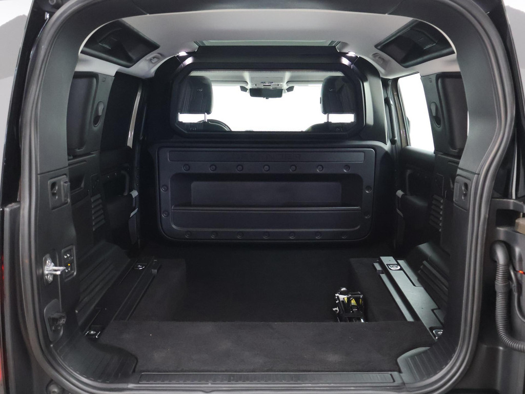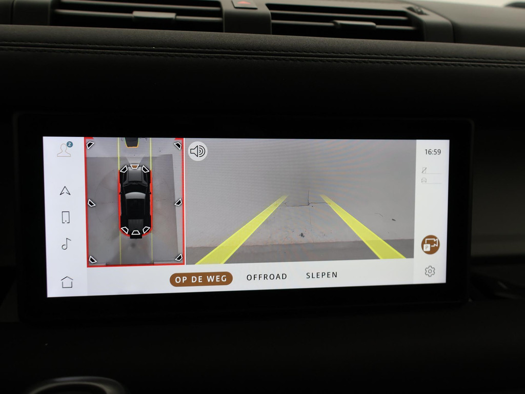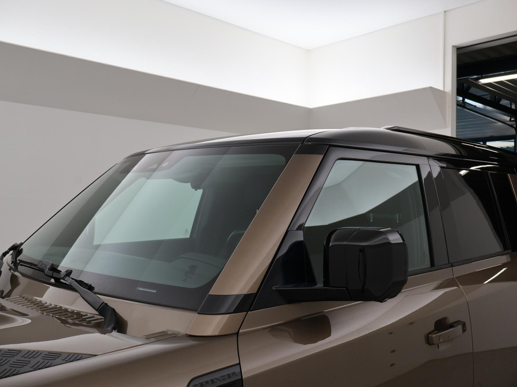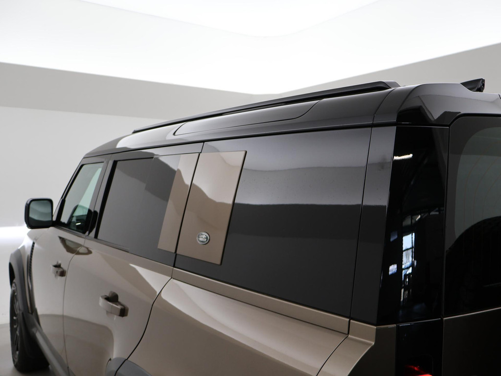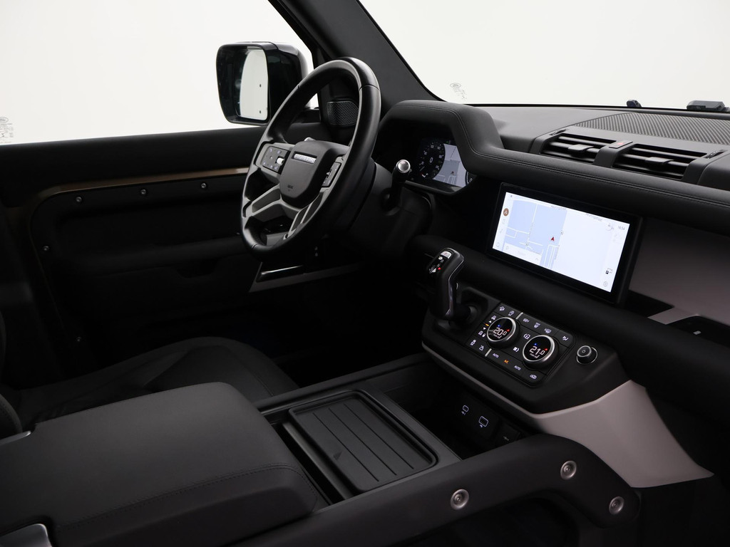 Defender 110 grijs kenteken met 2 zitplaatsen, Gondwana Stone Gloss exterieurkleur met zwart dak, zwarte spiegels en zwarte velgen, Panorama schuif/kanteldak, 360 graden camerasysteem, Stoelverwarming, Stuurwielverwarming, Koelkast in de middenarmsteun, Volledig elektrisch wegklapbare trekhaak met 3500 kg trekgewicht op kenteken, Luchtvering met regelbare rijhoogte, Keyless-entry en keyless-drive, Spiegel met achteruitrijcamera functie en spiegelfunctie, Meridian Premium sound, 19 inch lichtmetalen velgen, Full LED koplampen, LED achterlichten, Digitale cockpit met digitale tellers en navigatie kaartweergave + mediaweergave beeldvullende modus, Profiglass dubbel cabine ombouw met Defender inscriptie in het tussenschot, Draadloze Apple Carplay / Android Auto appstreaming Google Maps, Flitsmeister, Spotify etc, DAB+ Digitale radio, Lijnassistentie, Keyless-entry en keyless-drive, Draadloze telefoonlader, Botswaarschuwing, Cruise control, Elektronisch verwarmde voorruit, Climate control, USB 2 en USB C laders, D240 2.0D Ingenium 240 PK diesel automaat 4x4. Elektronisch sperdifferentieel achter met koppelverdeling dmv remmen (TVBB). Prijs is exclusief BTW.