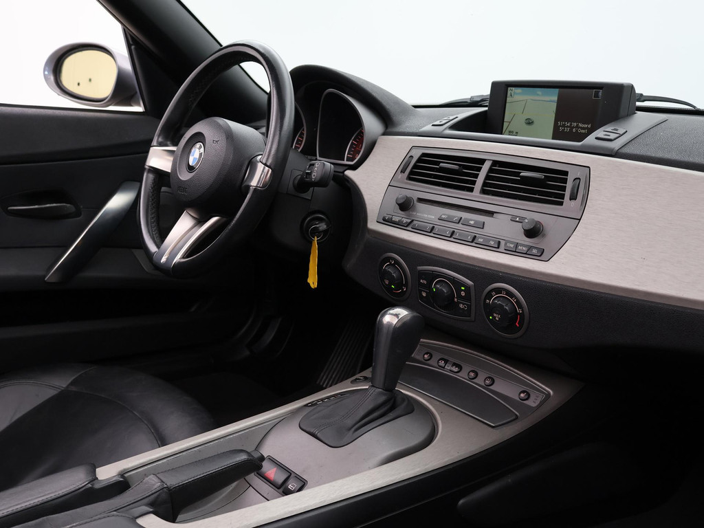 Origineel Nederlandse Z4 3.0I S 231 PK 6-cilinder lijnmotor en automaat, Zwart volledig leder interieur met stoelverwarming, Navigatie, Xenon verlichting, Parkeersensoren, Audio met stuurwielbediening, Cruise control, Elektrische stoelverstelling, Climate control, Zwarte elektrische softtop cabriokap.