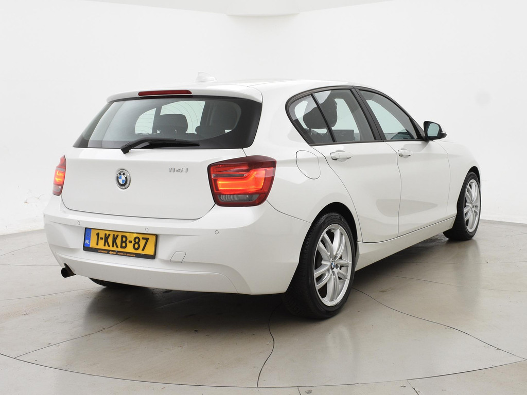 Origineel Nederlandse auto van 05-2013, 114i EDE High Executive, Breedbeeld navigatiesysteem, Bluetooth telefoonverbinding met audiostreaming, Afneembare trekhaak, Lichtmetalen velgen, Stoelverwaming met 3 standen, Xenon verlichting met LED dagrijverlichting, Climate control, Cruise control.