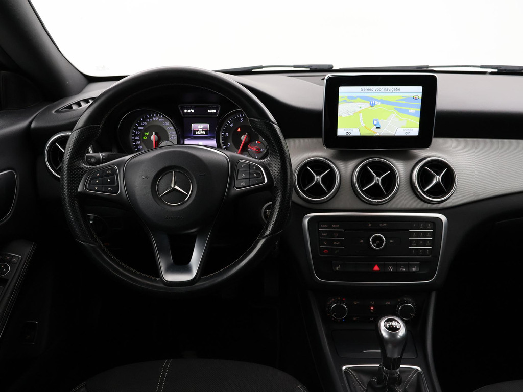 CLA 180 Handgeschakeld met 6 versnellingen, Xenon verlichting met LED dagrijverlichting, Navigatiesysteem met kaartweergave, 18 Inch lichtmetalen velgen, Sportstoelen, Stoelverwarming met 3 standen, Bluetooth telefoonverbinding met audiostreaming, Multifunctioneel leder stuurwiel.
