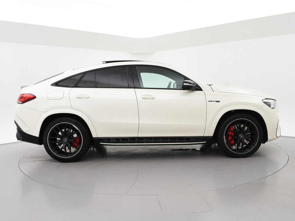 Nieuw model GLE Coupé 63 AMG S 612 PK 4.0 V8 Bi-Turbo 4Matic+ in het Manufaktur Diamantweiss Bright metallic (kleur 799) met Custom made leder exclusief nappaleder wit + zwart met diamond stitching inclusief deurpanelen en middenconsole met contrasterend stiksel. RDW nieuwprijs 226.299 euro, Volledige onderhoudshistorie online bij Mercedes-Benz bijgehouden en aanwezig, Deze auto is door onszelf in 2021 met 6 maanden oud bij het verkooppunt van de Mercedes-Benz fabriek in Duitsland gekocht en geïmporteerd, daarna van 1 Nederlandse eigenaar geweest. Sportuitlaatsysteem AMG met originele elektronisch regelbare kleppen in de einddemper + extra kleppen voor de einddemper op afstandsbediening te regelen. 22 inch AMG breedset velgen, Sfeerverlichting met tientallen kleuren en verschillende kleurcombinaties, Adaptive cruise control Distronic, Dodehoek assistentie, Lijnassistentie, Burmester Premium sound, Treeplanken, Donker glas achter, Panorama schuif/kanteldak, Draadloze telefoonlader, Full LED koplampen, Widescreen digitale cockpit met verschillende thema's en breedbeeld MBUX Navigatie + Apple Carplay / Android Auto. Elektrische stoelverstelling met geheugen links en rechts, Stoelverwarming, Elektrisch verstelbaar stuurwiel, Elektrische achterklep, Luchtvering met regelbare rijhoogte, Zwarte buitenspiegels en achterspoiler, 360 graden surround view camerasysteem, AMG Night Pakket, DAB+ Digitale radio, Verlichte AMG dorpellijsten, 4 zwarte AMG uitlaattips, Verkeersbordenherkenning, Verkeerslichtweergave, Volledig leder dashboard, Rode remklauwen, LED achterlichten, Eikenhout grijs openporig dashboard inleg, Nappaleder + Microvezel AMG Sportstuurwiel, Luchtkwaliteitspakket met luchtverfrissing, AMG Drive Unit stuurwieltoetsen.