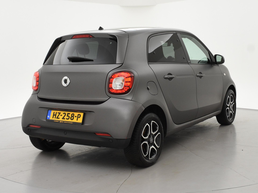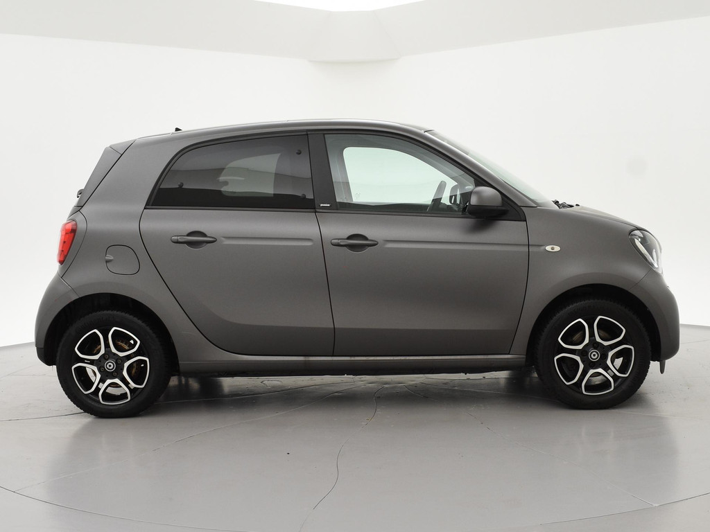 Mat grijs gewrapte Smart FourFour (originele kleur is rood), Panoramadak, Climate control, Privacy glass, Cruise control, Lichtmetalen velgen, Navigatie, Bluetooth met audiostreaming, Botswaarschuwing, Kleurenscherm boardcomputer, Onderhoudshistorie aanwezig, LED dagrijverlichting, Middenarmsteun.