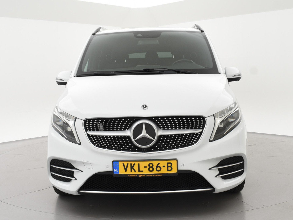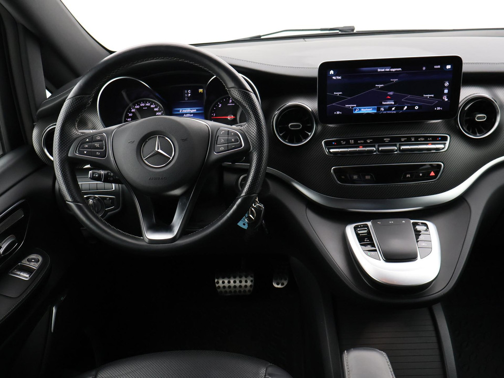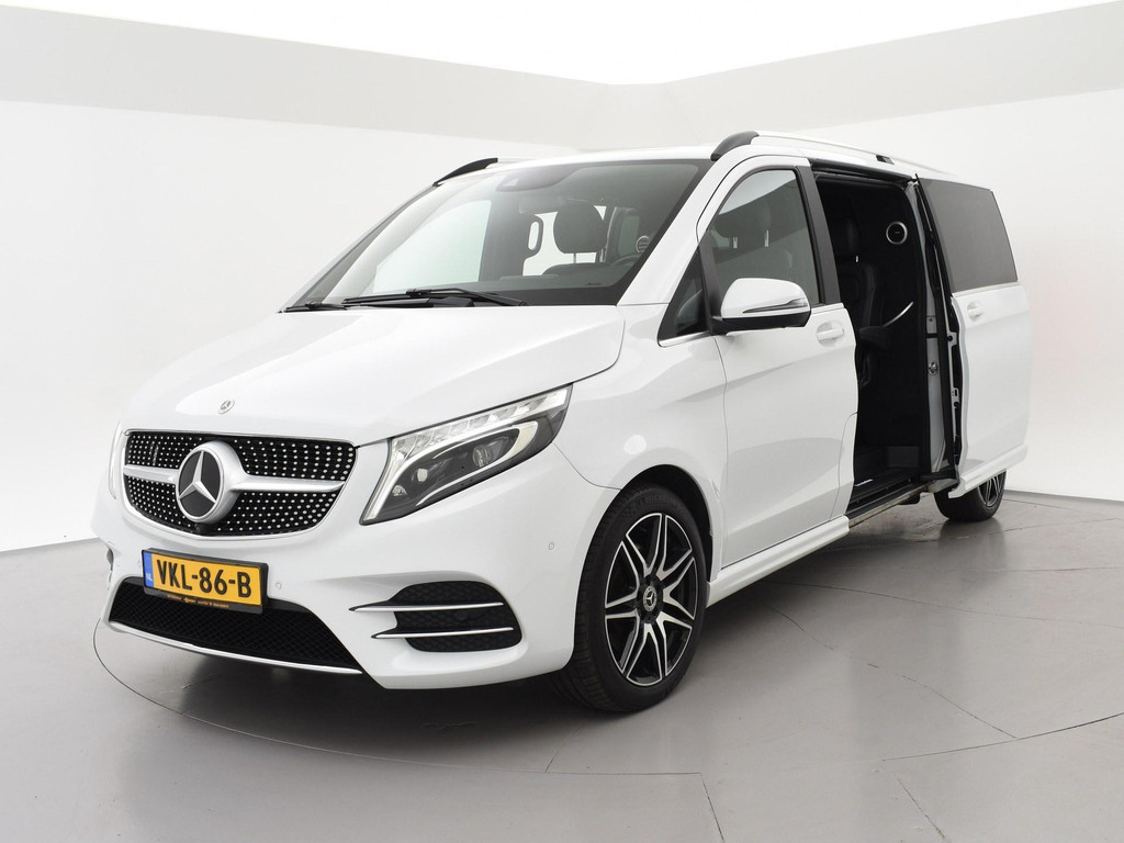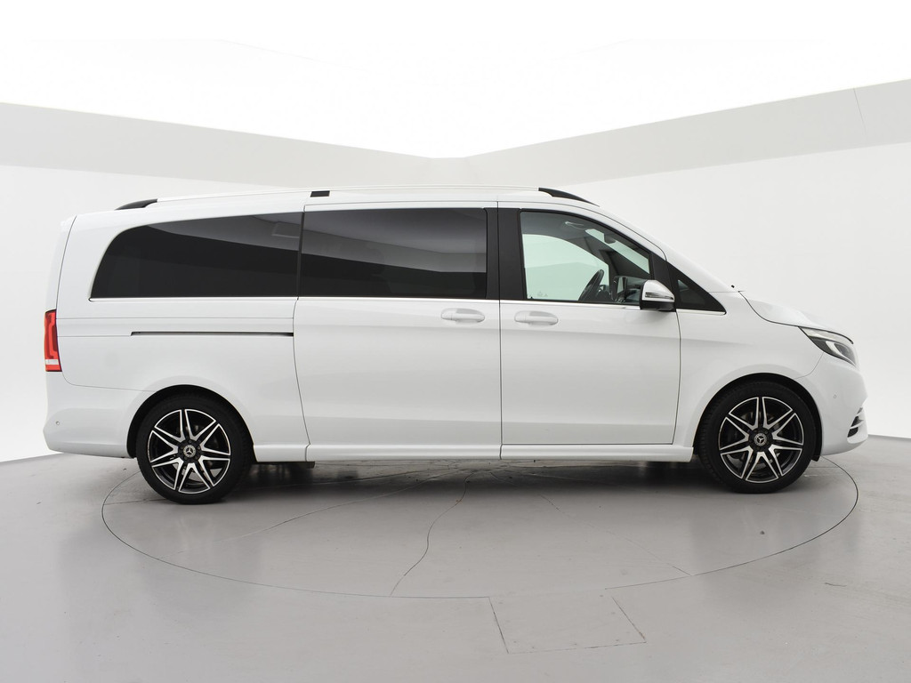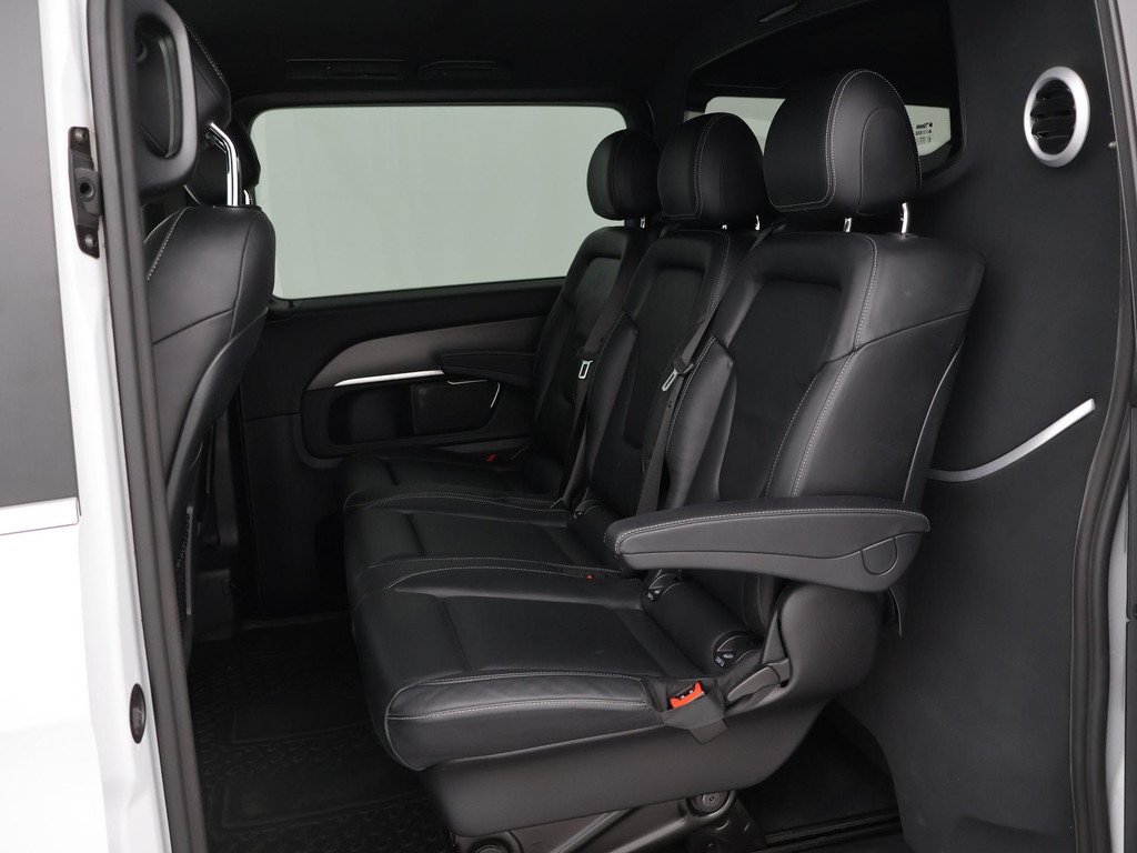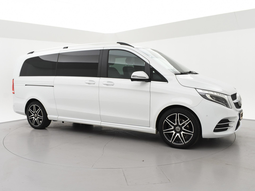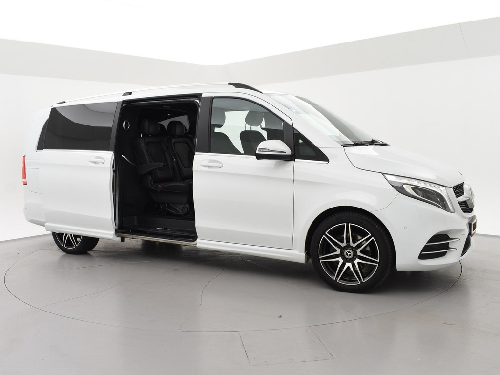 V-klasse 300d 239 PK Dubbel cabine automaat met 5 zitplaatsen, Bergkristallweiß metallic wit parelmoer, Zwart volledig leder interieur met wit stiksel en elektrische stoelverstelling en geheugenstanden, Sfeerverlichting interieur met verschillende kleuren, Burmester premium sound, Led koplampen, LED achterlichten, LED dagrijverlichting, Elektrische schuifdeuren, Elektrische achterklep, Distronic+ met regelbare afstand op de voorganger, Stoelverwarming, Stoelventilatie, Luchtvering met regelbare rijhoogte, Diamond grill, Apple carplay/Android auto met verschillende apps waaronder: Spotify, Whatsapp en Flitsmeister, DAB Digitale radio, 19 Inch lichtmetalen AMG velgen, Dodehoek detectie, Privacy glass, 360 Graden camera, Multifunctioneel leder stuurwiel, Standkachel, 4-Zone Climate control, Afneembare trekhaak met 2500 kg trekgewicht op kenteken, Navigatiesysteem met kaartweergave, Bluetooth telefoonverbinding met audiostreaming, Prijs is exclusief BTW.