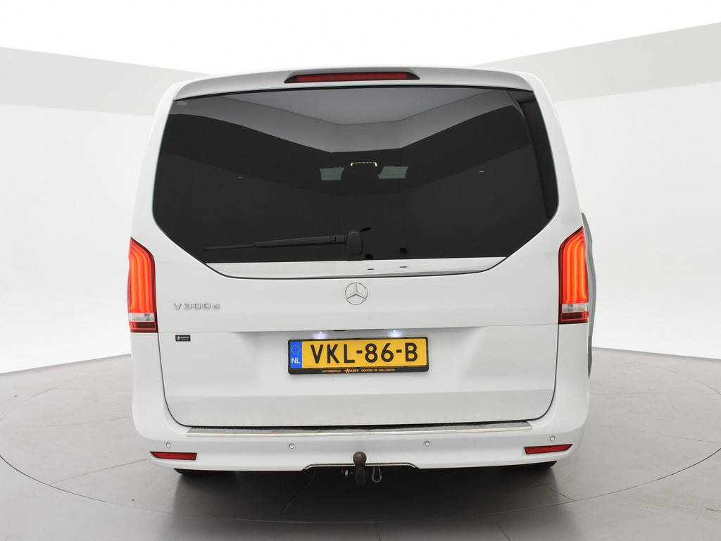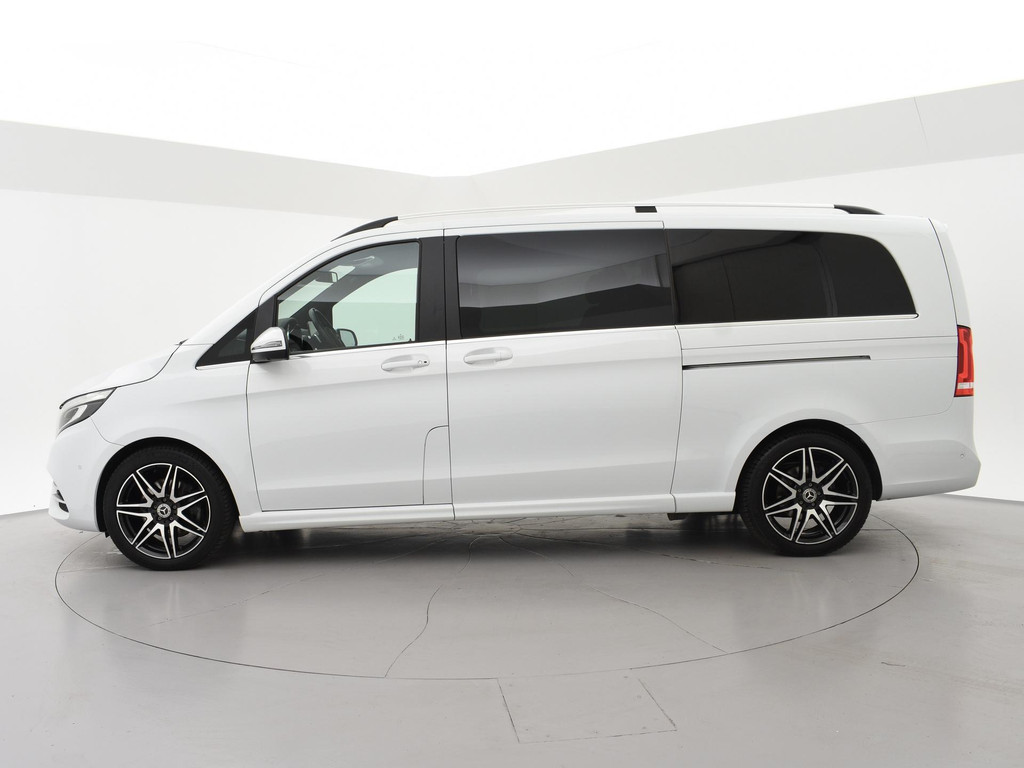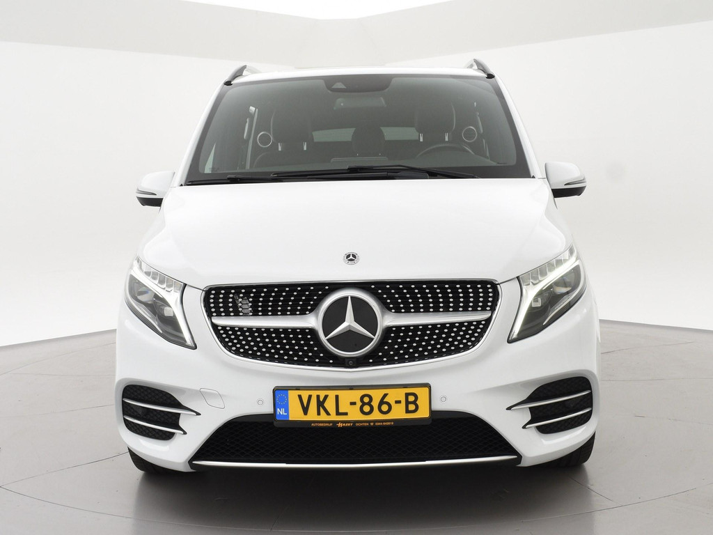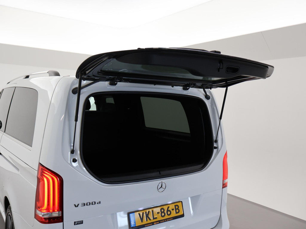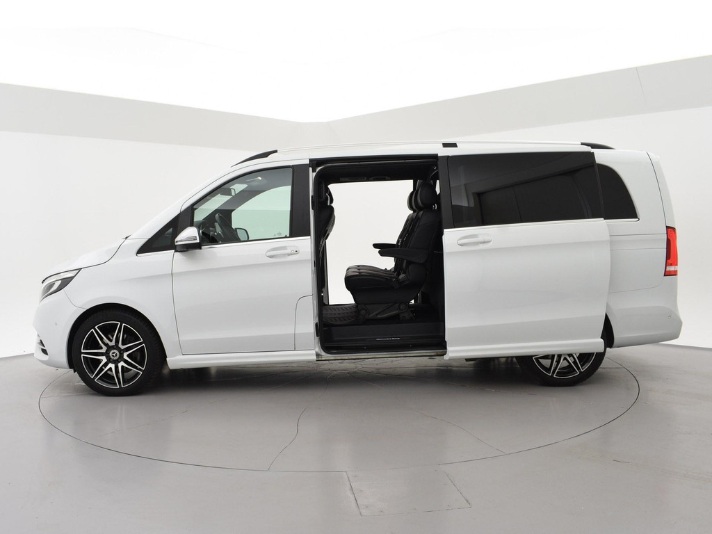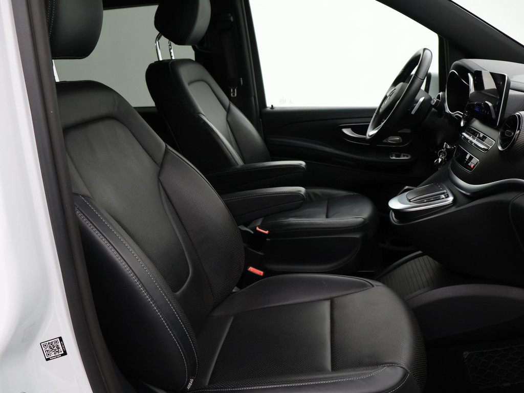 V-klasse 300d 239 PK Dubbel cabine automaat met 5 zitplaatsen, Bergkristallweiß metallic wit parelmoer, Zwart volledig leder interieur met wit stiksel en elektrische stoelverstelling en geheugenstanden, Sfeerverlichting interieur met verschillende kleuren, Burmester premium sound, Led koplampen, LED achterlichten, LED dagrijverlichting, Elektrische schuifdeuren, Elektrische achterklep, Distronic+ met regelbare afstand op de voorganger, Stoelverwarming, Stoelventilatie, Luchtvering met regelbare rijhoogte, Diamond grill, Apple carplay/Android auto met verschillende apps waaronder: Spotify, Whatsapp en Flitsmeister, DAB Digitale radio, 19 Inch lichtmetalen AMG velgen, Dodehoek detectie, Privacy glass, 360 Graden camera, Multifunctioneel leder stuurwiel, Standkachel, 4-Zone Climate control, Afneembare trekhaak met 2500 kg trekgewicht op kenteken, Navigatiesysteem met kaartweergave, Bluetooth telefoonverbinding met audiostreaming, Prijs is exclusief BTW.