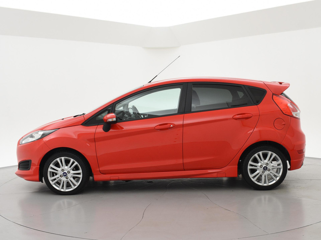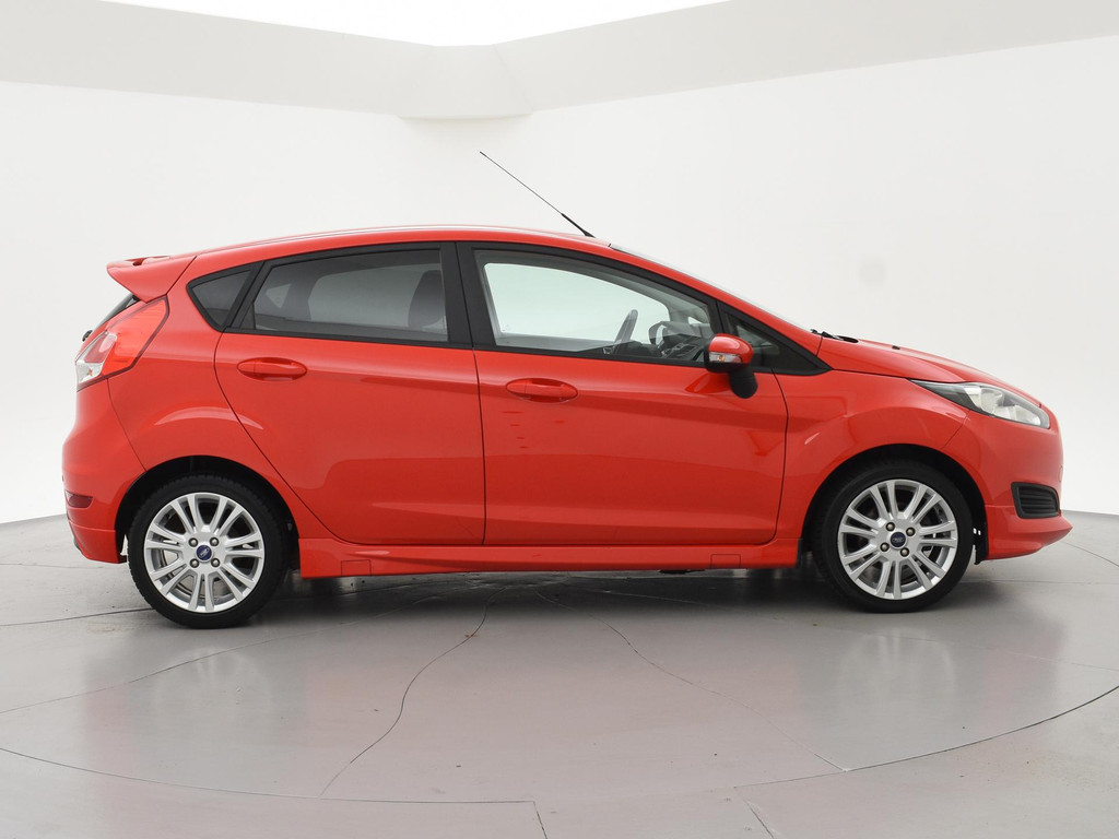 Origineel Nederlandse Ford Fiesta van 05-2014, 1.0 EcoBoost 100 PK Hot Hatch uitvoering, Sportieve uitvoering met sportbumpers rondom, Sideskirts, Spoiler en 16 inch lichtmetalen velgen, Race Red exterieurkleur, Airco, Navigatiesysteem met kaartweergave, Bluetooth telefoonverbinding met audiostreaming, Multifunctioneel stuurwiel, Cruise control, Onderhoudsboekje afgestempeld aanwezig.
