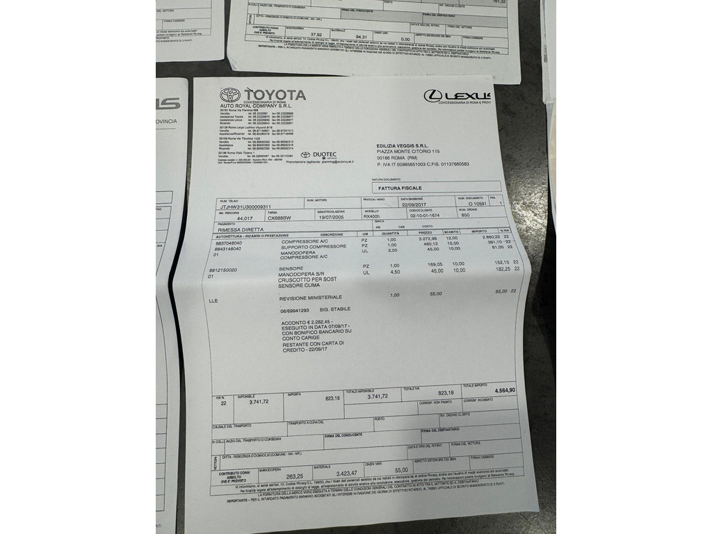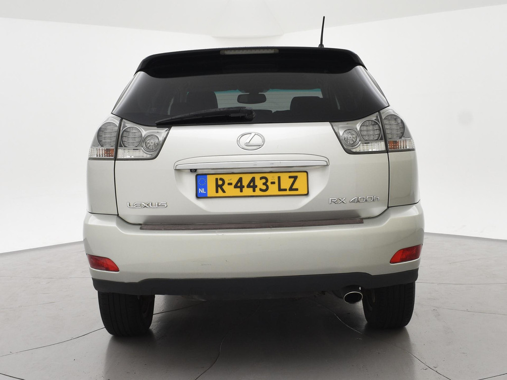 Lexus RX 400h 4WD 272 PK Platinum automaat, Origineel geleverd in Rome, Italië. Sinds 2023 in Nederland, Alle documentatie van de jaren in Italië aanwezig doormiddel van enorm veel facturen, Daar ook volledig Toyota/Lexus dealer onderhouden, Slechts 105.419 kilometer op de teller, Youngtimer met dagwaarde bijtelling bij zakelijke aanschaf, Achteruitrijcamera, Elektrisch schuif/kanteldak, Volledig leder interieur met stoelverwarming, Climate control, Cruise control, 18 Inch lichtmetalen velgen, Multifunctioneel stuurwiel, 18 Inch lichtmetalen velgen, Elektrisch verstelbare bestuurdersstoelen met geheugenstanden, Elektrisch verstelbaar stuurwiel, Elektrisch inklapbare buitenspiegels, Navigatiesysteem met kaartweergave.
