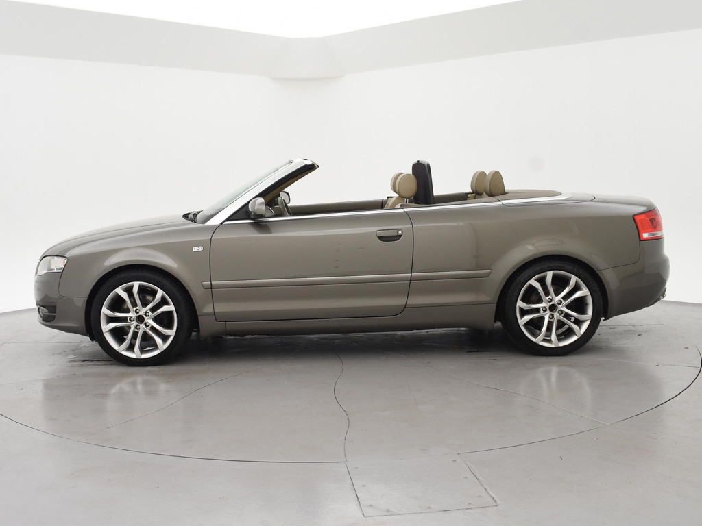A4 cabrio 3.0 TDI V6 232 PK Quattro in het Alpaca Beige metallic (kleur Y5) met Beige leder sportinterieur met verlengbaar zitvlak en stoelverwarming. Navigatie, Climate control, Cruise control, Xenon verlichting, Parkeersensoren voor + achter, Windscherm, Elektrische stoelverstelling, Houtinleg dashboard, Bluetooth carkit. Youngtimer met dagwaarde bijtelling bij zakelijke aanschaf.