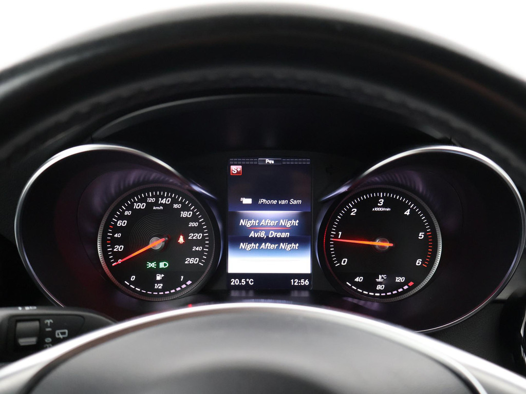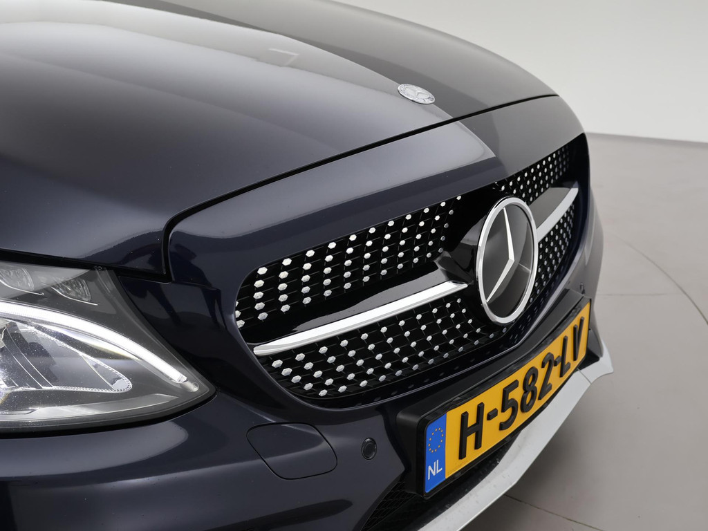 Mercedes-Benz C-klasse Estate 180 diesel handgeschakeld met 6 versnellingen, AMG Sport uitvoering, Cavansite Blue metallic exterieurkleur, Volledig (kunst)leder sportinterieur, Sportstoelen met verlengbaar zitvlak, LED koplampen, LED achterlichten, Stoelverwarming met 3 standen, Bluetooth telefoonverbinding met audiostreaming, Navigatiesysteem met kaartweergave, Lichtmetalen velgen AMG, Elektrische achterklep, Diamond grill, Cruise control, Climate control. De bestuurdersstoel heeft scheurtjes. Er zitten Burmester speakerkappen in de deurpanelen, maar wij hebben de indruk dat er niet echt Burmester in zit.