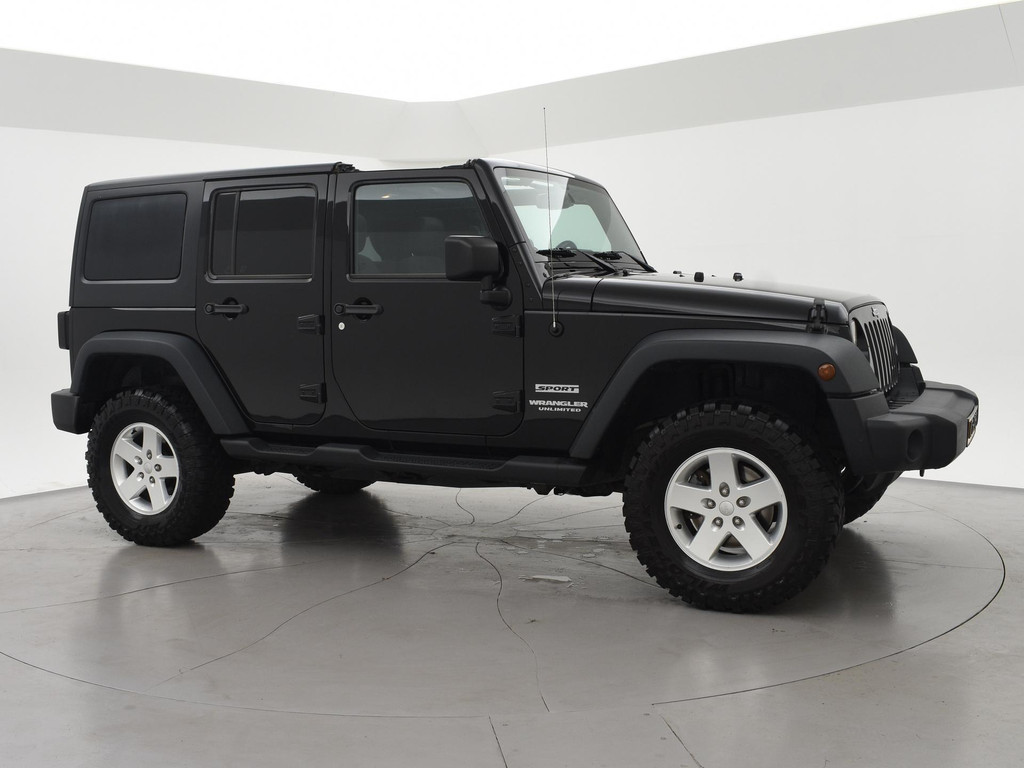 Origineel Nederlandse Jeep Wrangler 2.8 CRD 200 PK Sport 4X4 Automaat, Grijs kenteken met 2 zitplaatsen, Afneembaar dak in 2 delen waardoor je dus ook met het dak open kunt rijden, Trekhaak met 2200 KG trekgewicht, All terrain banden met goed profiel, Lichtmetalen velgen, Airco, Cruise control, Elektrische ramen, Prijs is exclusief BTW.