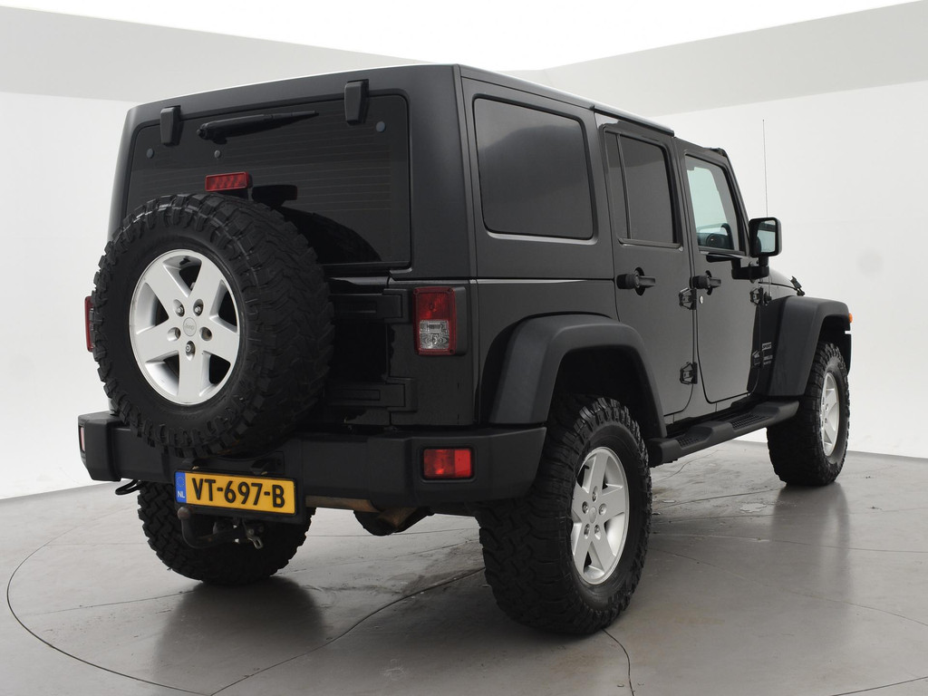 Origineel Nederlandse Jeep Wrangler 2.8 CRD 200 PK Sport 4X4 Automaat, Grijs kenteken met 2 zitplaatsen, Afneembaar dak in 2 delen waardoor je dus ook met het dak open kunt rijden, Trekhaak met 2200 KG trekgewicht, All terrain banden met goed profiel, Lichtmetalen velgen, Airco, Cruise control, Elektrische ramen, Prijs is exclusief BTW.