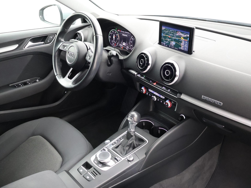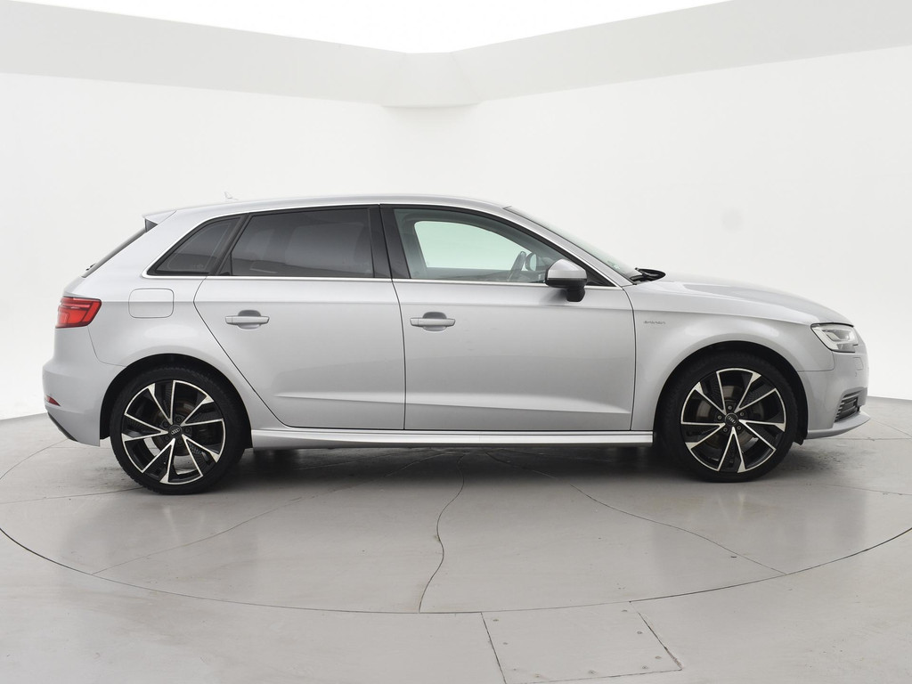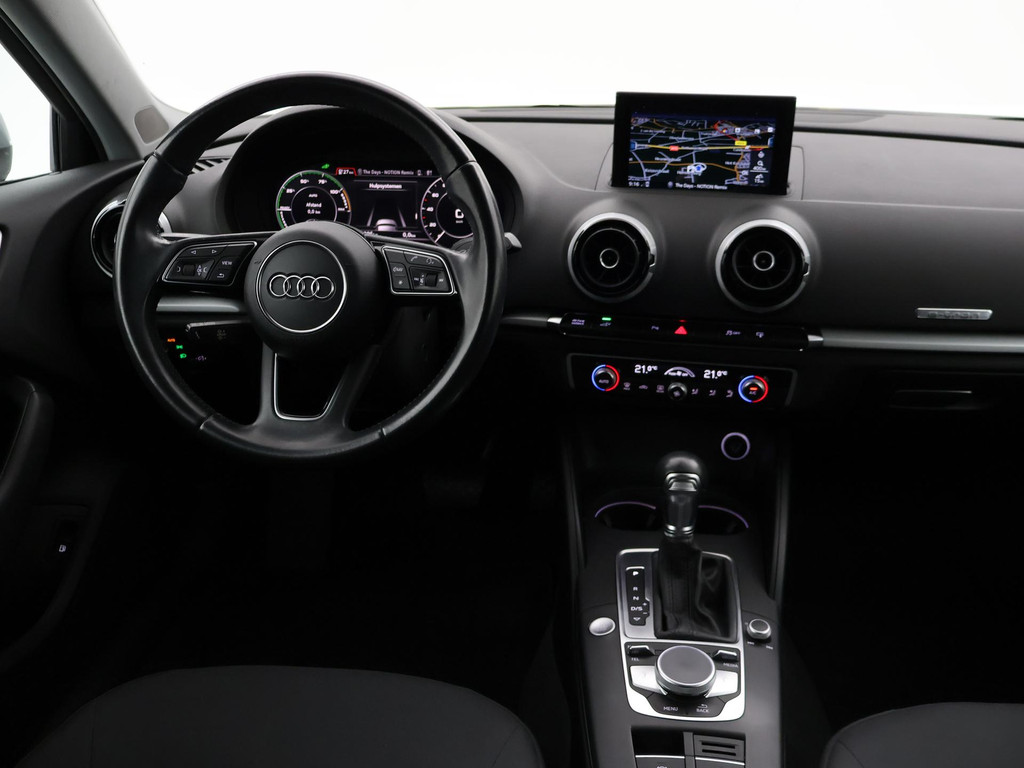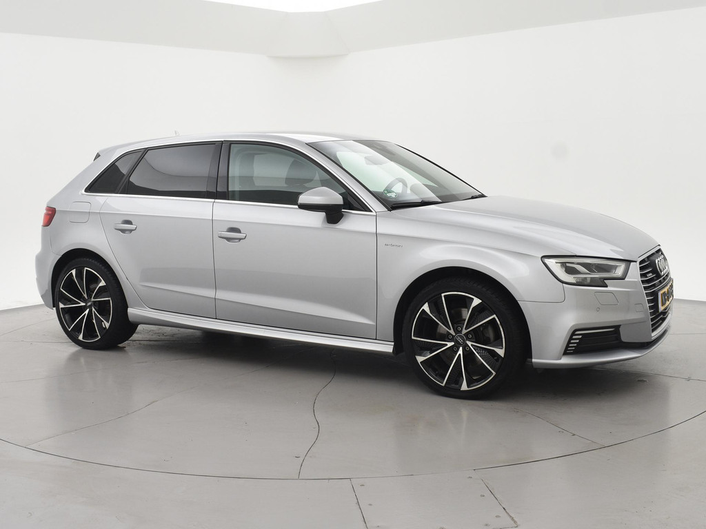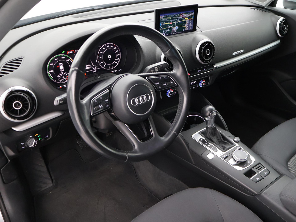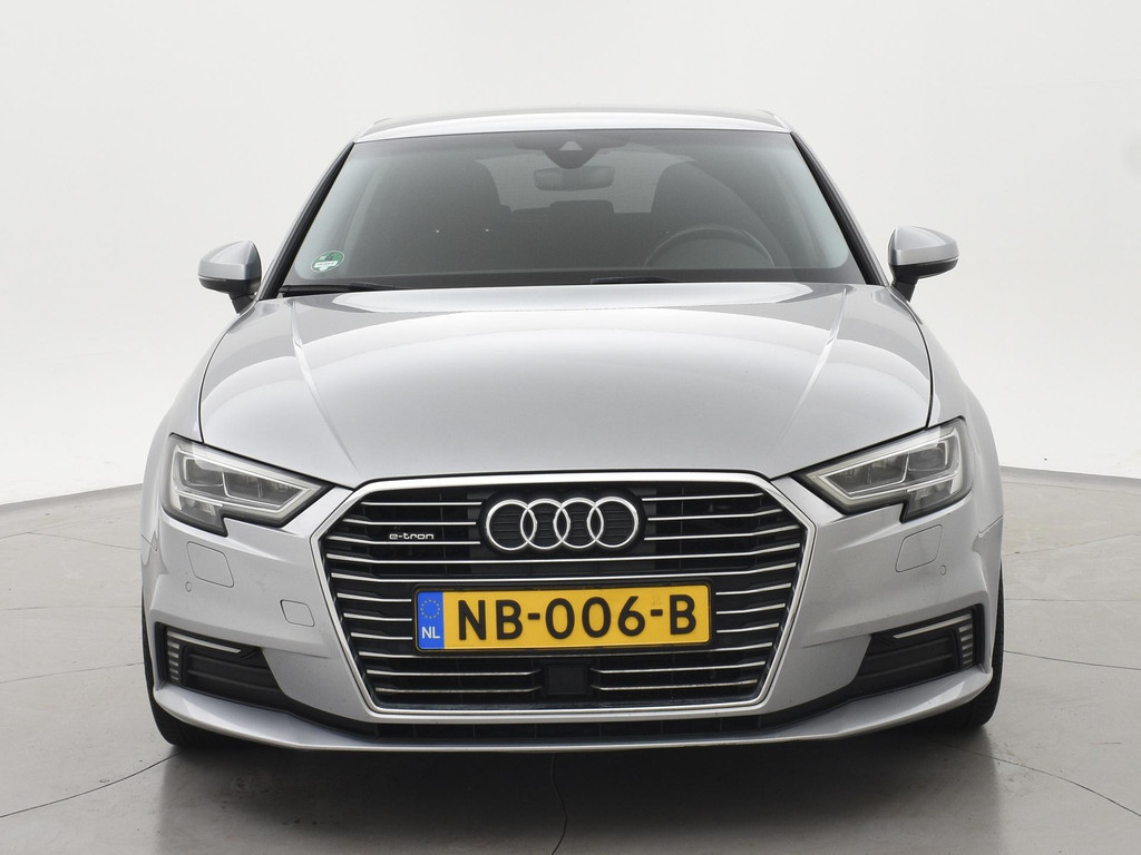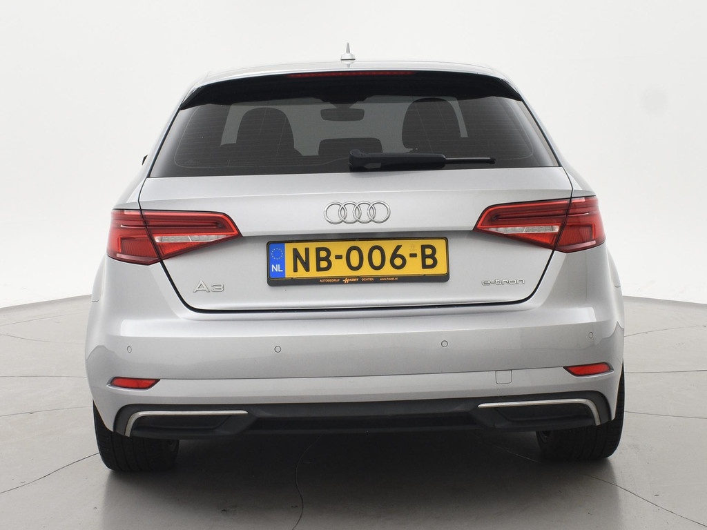 Origineel Nederlandse A3 plug-in hybrid E-Tron 204 PK Automaat van 12-2016 in het Floretzilver metallic, Wegklapbare trekhaak, Virtual cockpit digitale cockpit met verschillende tellerweergave mogelijkheden en navigatie kaartweergave modus, Full LED koplampen, LED achterlichten, Navigatie, Privacy glass achter, Parkeersensoren voor + achter, Bluetooth met audiostreaming, Middenarmsteun, Keyless-entry en keyless-drive, Audi Drive Select regelbare rij-eigenschappen, Climate control met links en rechts gescheiden temperatuur, Cruise control.