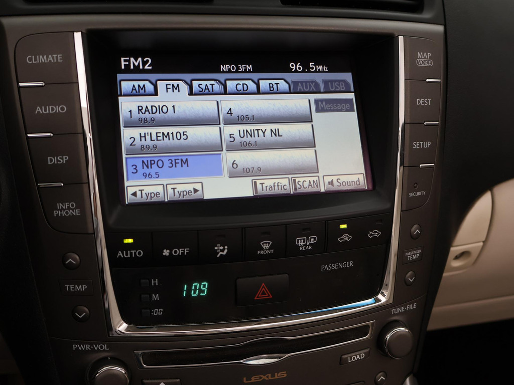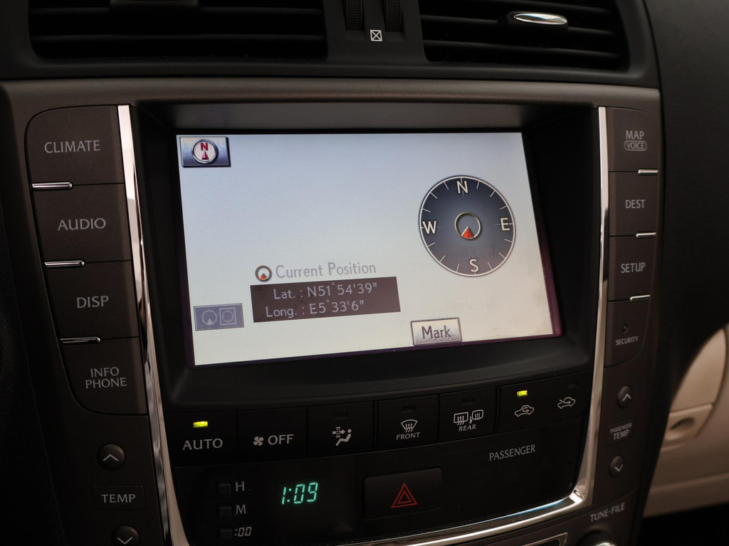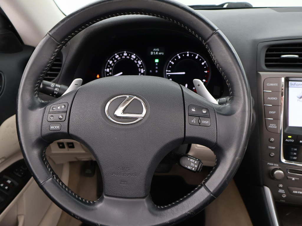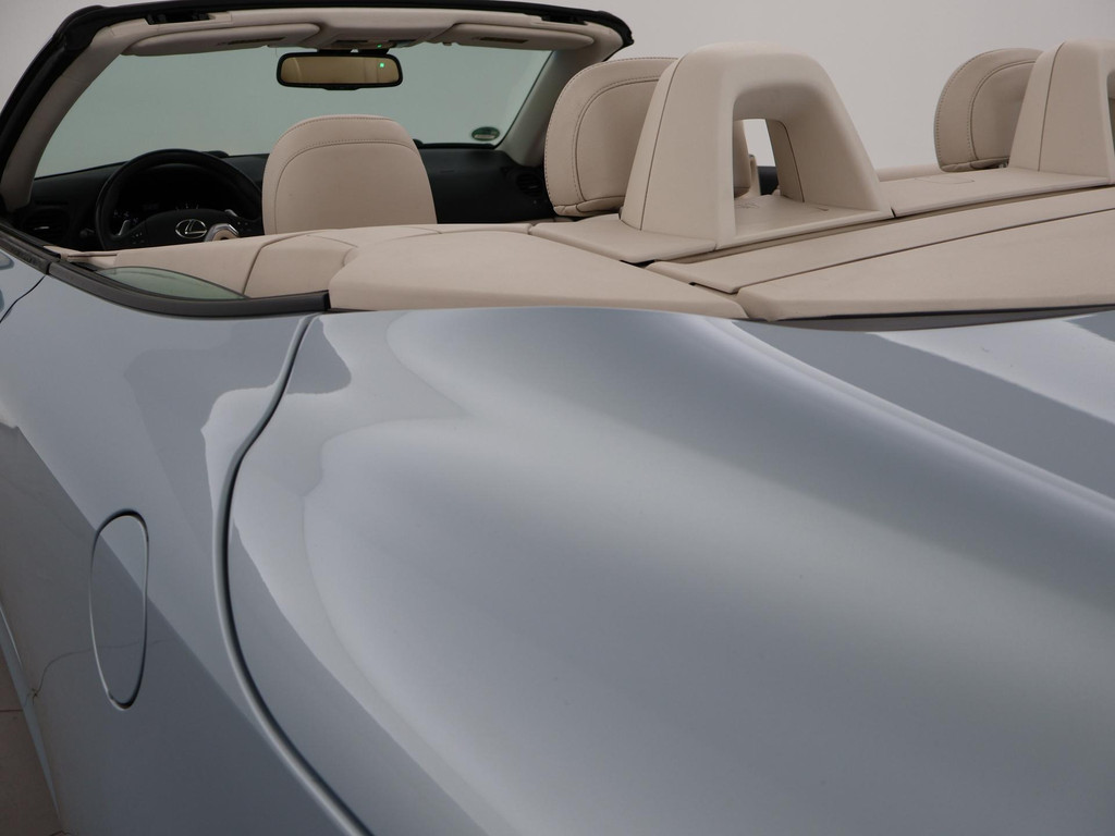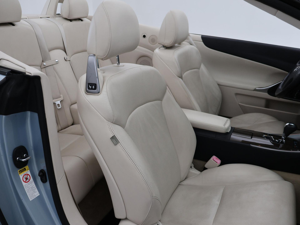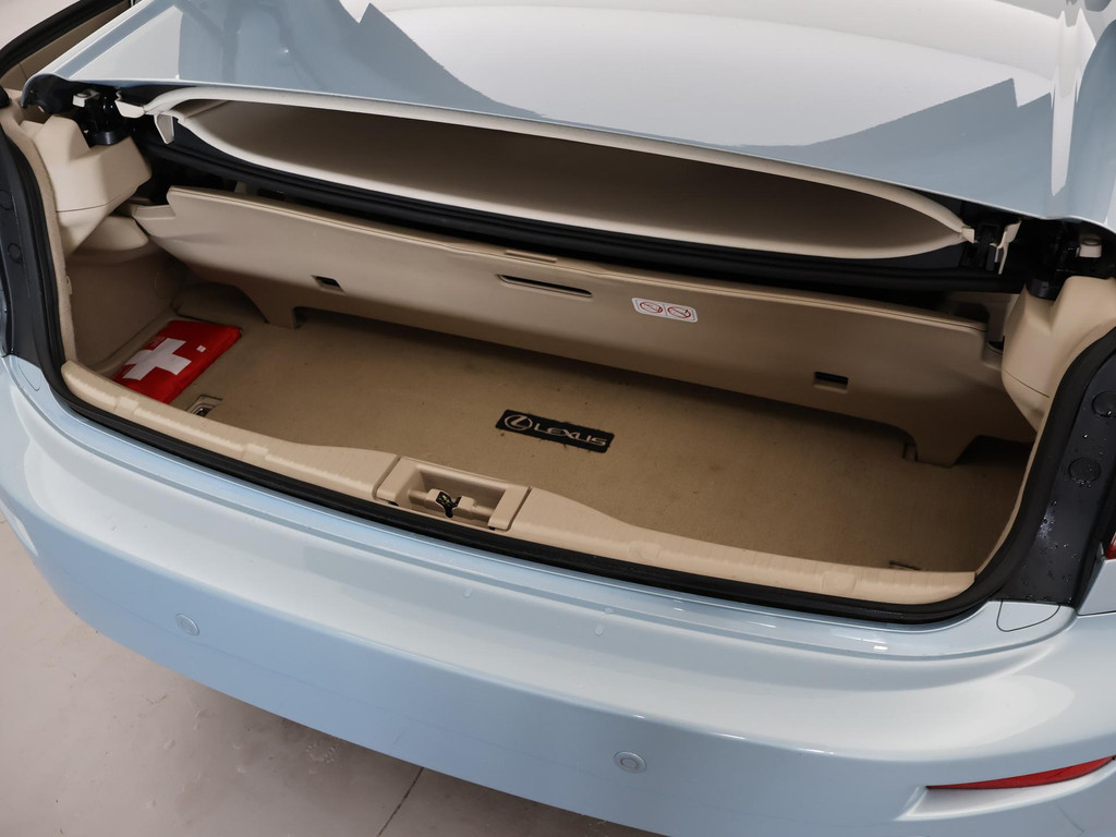 Unieke auto: IS 250C 2.5 V6 208 PK Automaat Cabriolet, Lichtblauw metallic met beige volledig leder interieur, Stoelventilatie, Stoelverwarming, Elektrische stoelverstelling met geheugen, Cruise control, Mistlampen, Elektrisch verstelbaar stuurwiel, Leder stuurwiel met audiobediening, Automatisch dimmende binnenspiegel, Keyless-entry en keyless-drive, Elektrische cabriokap, 6CD-wisselaar, Navigatie wel aanwezig, maar functioneert niet, omdat deze auto nieuw geleverd is in Amerika. De auto reed daar bij een Nederlandse diplomaat die de auto als verhuisgoed mee naar Nederland heeft genomen. Carfax aanwezig waarin te zien is dat de auto een diplomaten registratie had in Amerika en geen schadeverleden. De tellerstand 112.345 is in mijlen, omgerekend naar kilometers is dit 180.802 km.