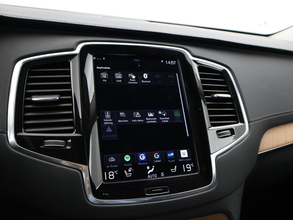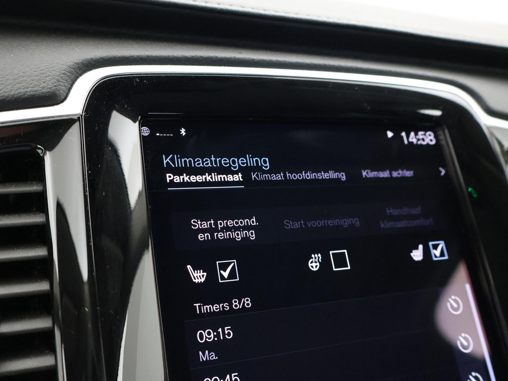 T8 Plug-in hybrid 456 PK AWD Automaat, 7-Persoons uitvoering, Long Range uitvoering met een verlengde actieradius tot maximaal 70 kilometer, Wegklapbare trekhaak met 2350 kg trekgewicht op kenteken, Luchtvering met regelbare rijhoogte, Head-up display, Stoelverwarming voor, Stuurwielverwarming, Standkachel waarmee je de auto met de Volvo app kan laten voorverwarmen, Zonneschermen achterin, 360 Graden camera met aparte trekhaak modus, Elektrische stoelverstelling met geheugen, Privacy glass, Draadloze Apple Carplay / Android Auto appstreaming Google Maps, Flitsmeister, Spotify etc, Full LED koplampen, LED achterlichten, Keyless-entry en keyless-drive, Elektrische achterklep, Adaptive cruise control met Pilot Assist, Verkeersbordenherkenning, Lijnassistentie, DAB Digitale radio, Navigatie groot scherm touch-screen, Digitale cockpit met verschillende thema's, Bluetooth met audiostreaming, 21 inch lichtmetalen velgen.