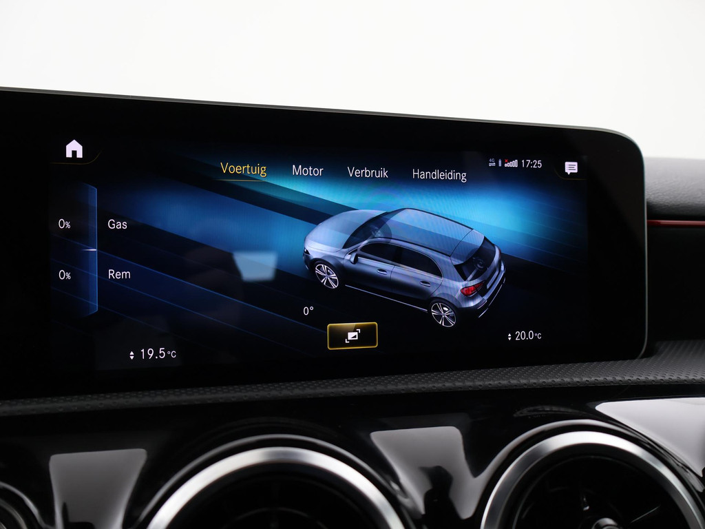 A200 163 PK Automaat, AMG Sport uitvoering met Night package, Mountain Gray metallic, Zwart sportinterieur met rood stiksel, Widescreen MBUX breedbeeld scherm plus digitale cockpit, Achteruitrijcamera, Panorama schuif/kanteldak, Privacy glass, Full LED Koplampen, Diamond grille AMG, Stoelverwarming, Climate control, DAB+ digitale radio, Bluetooth met audiostreaming, Parkeersensoren, Zwarte hemelbekleding.