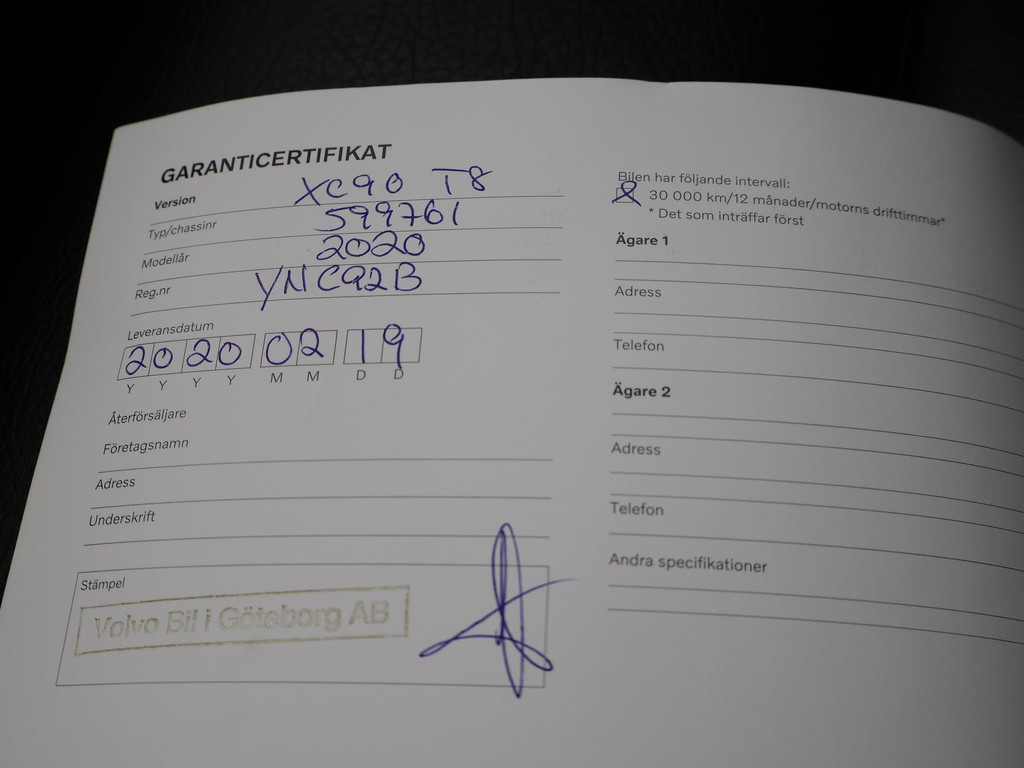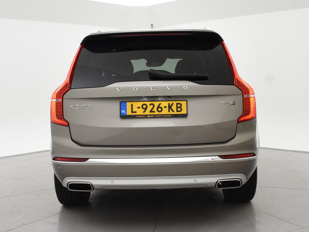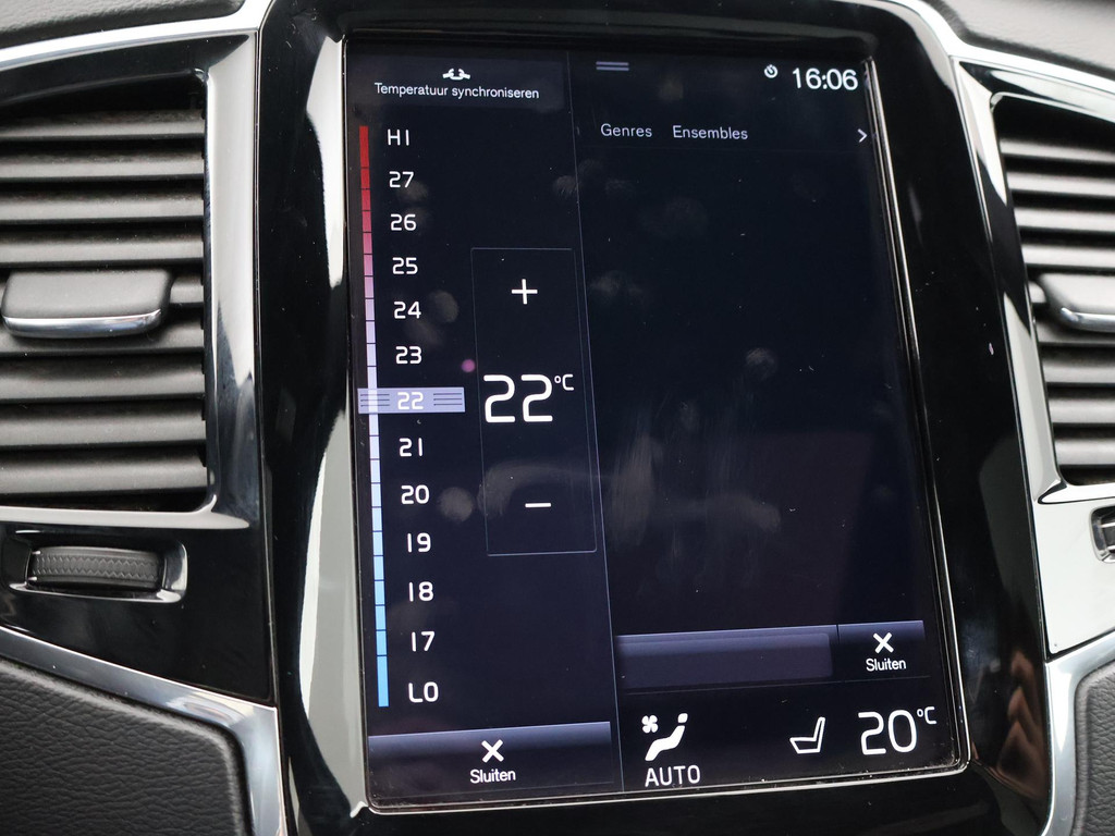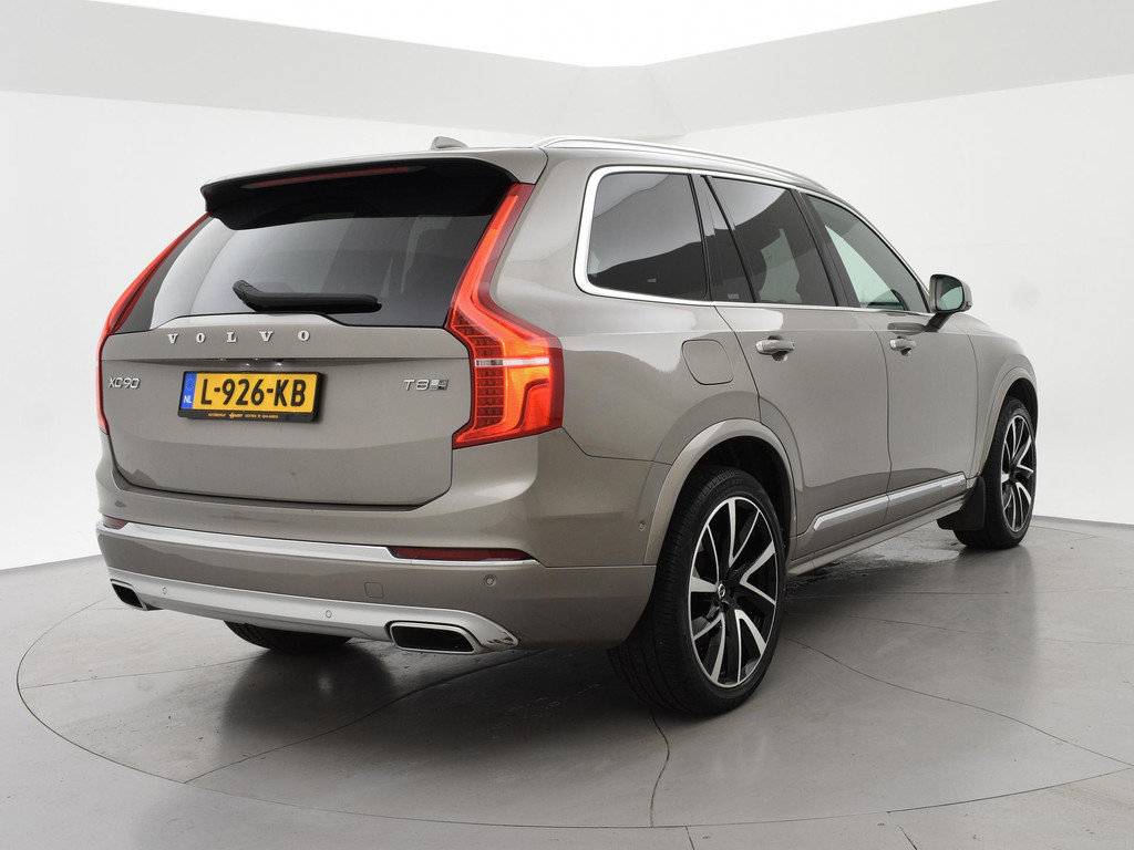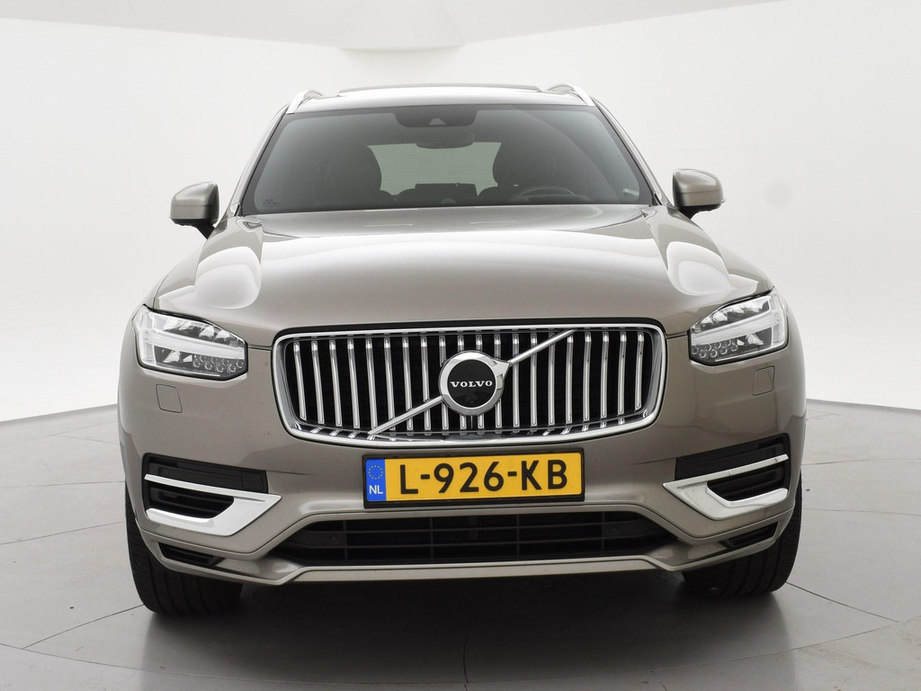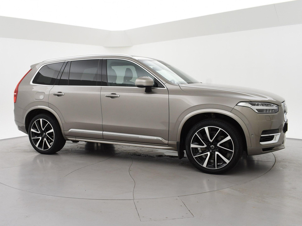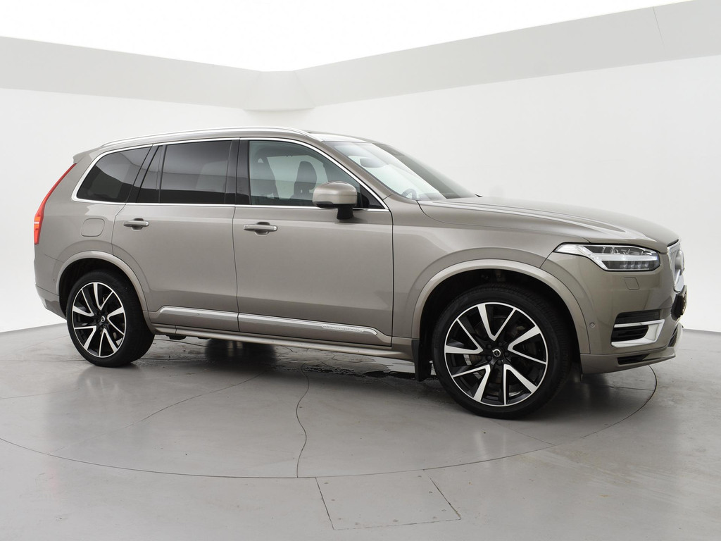 Uniek mooie XC90 van het Facelift model met de nieuwe grille en actieve Full LED koplampen in de meest luxe Inscription uitvoering, BTW verrekenbaar, Pebble Grey metallic exterieurkleur (beige/zandkleur), Nieuwprijs 100.000 euro, Wegklapbare trekhaak met 2400 kg trekgewicht op kenteken, Bowers & Wilkins high-end audio met Concertgebouw Gotenburg surround beleving, Stuurwielverwarming, Stoelverwarming voor + achterin, 21 inch lichtmetalen velgen, Panorama schuif/kanteldak, Keyless-entry en keyless-drive, Elektrische achterklep met sensorsturing (voet bewegen onder de bumper), Zwart volledig leder interieur, Sfeerverlichting interieur, DAB+ digitale radio, Head-up display projectie tegen de voorruit, Volvo On Call smartphone connectie, 360 graden surround view camerasysteem, Blis dodehoek detectie, Adaptive cruise control, Climate control met aparte bediening achterin, Privacy glass, Lijnassistentie, Parkeerhulp, Standkachel met tevens programmeerbare stuurwielverwarming en stoelverwarming op dag en tijd, Distance alert, Botspreventie, Apple Carplay / Android Auto appstreaming Google Maps, Flitsmeister, Spotify, Whatsapp etc, Bluetooth met audiostreaming, Orrefors Sweden glazen automaatpook, Elektrisch inklapbare buitenspiegels, Sensus Pro Navigatie groot scherm, Intellisafe Surround, Park Assist Pilot, Zwarte hemelbekleding.