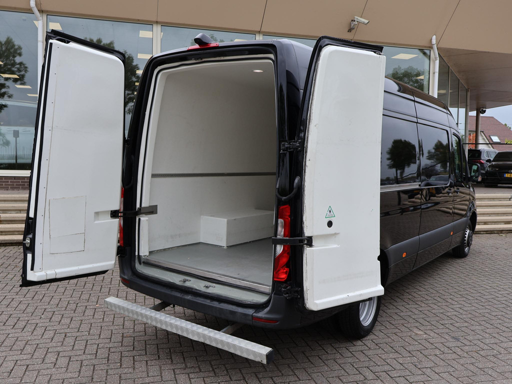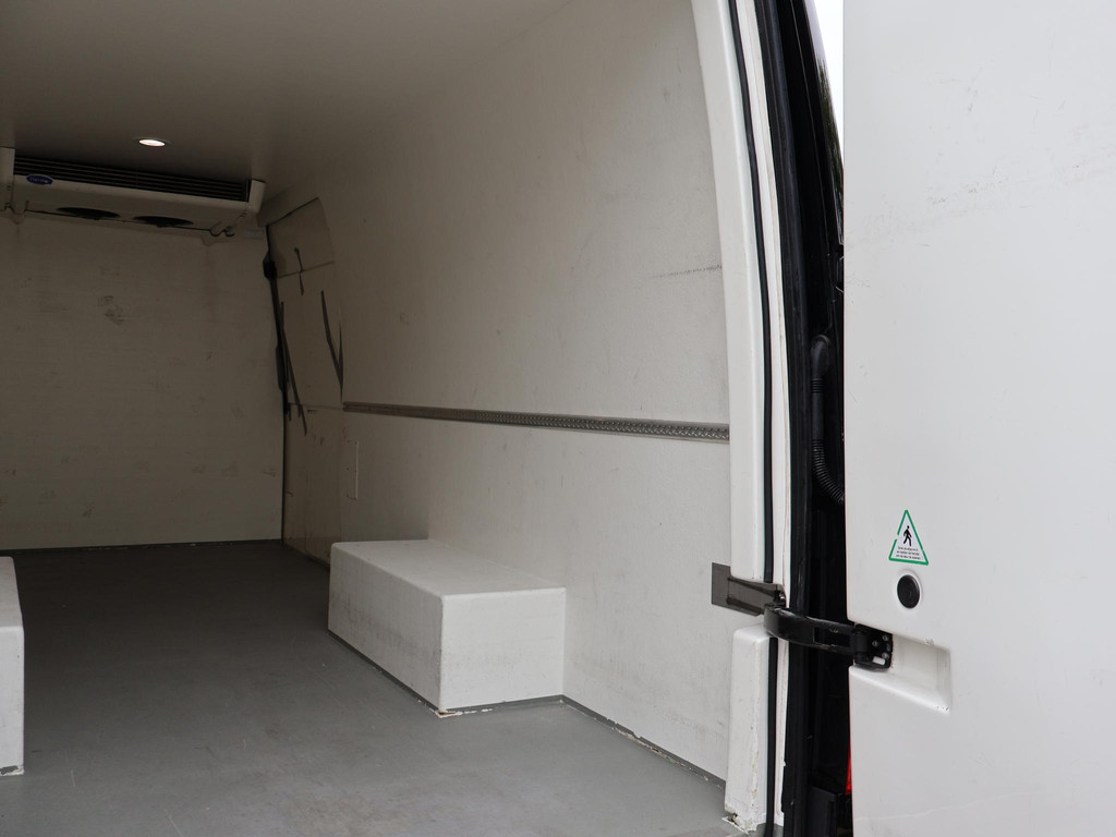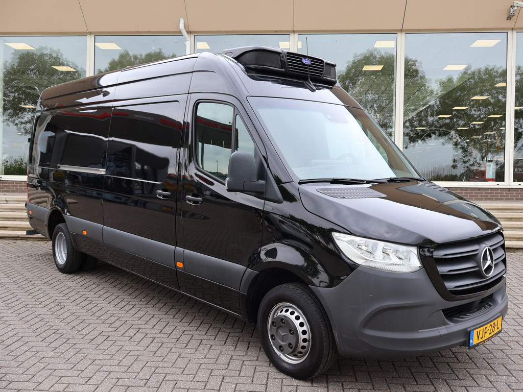 Sprinter 516 CDI 2.2 CDI 163 PK automaat, L3H2 uitvoering dus extra lang, Euro 6 emissienorm, Origineel Nederlandse en 1e eigenaar auto, Exterieurkleur Diepzwart (MB9040), Dubbel lucht achter extra sterke en zware 5-tons uitvoering maar teruggekeurd naar 3500 kg dus gewoon B-rijbewijs, Koelwagen ombouw door Peters Koelwagens B.V. uit Oss met een Carrier koelinstallatie met buitenunit boven de cabine, Bouwjaar koelinstallatie net als de auto ook 2021. Goed werkende koelinstallatie, Door ons goed getest, Koelt tot 0 graden (-0,3 graden is het laagste wat in te stellen is). Aansluiting voor nachtkoeling/stroom aansluiting. Luxe uitvoering met Navigatie MBUX touch-screen, DAB+ digitale radio, Apple Carplay / Android Auto appstreaming Google Maps, Flitsmeister, Spotify etc, Achteruitrijcamera, Dodehoek assistentie, Elektrisch inklapbare buitenspiegels, Bluetooth met audiostreaming, Comfort bestuurdersstoel met verlengbaar zitvlak en armleuning, Multifunctioneel stuurwiel met audiobediening en Cruise control, Attention Assist vermoeidheidsherkenning, Verkeersbordenherkenning, Spoorassistent lijnassistentie, Airco met digitaal display, Bumper beschermbalk achter, Zijmarkeringslichten, Schakelflippers aan het stuurwiel, Zijschuifdeur met sluitbekachtiging, Binnenmaten laadruimte: 410 cm laadlengte, 165 cm laadbreedte (95 tussen de wielkasten) en 180 cm hoogte. Prijs is exclusief BTW.