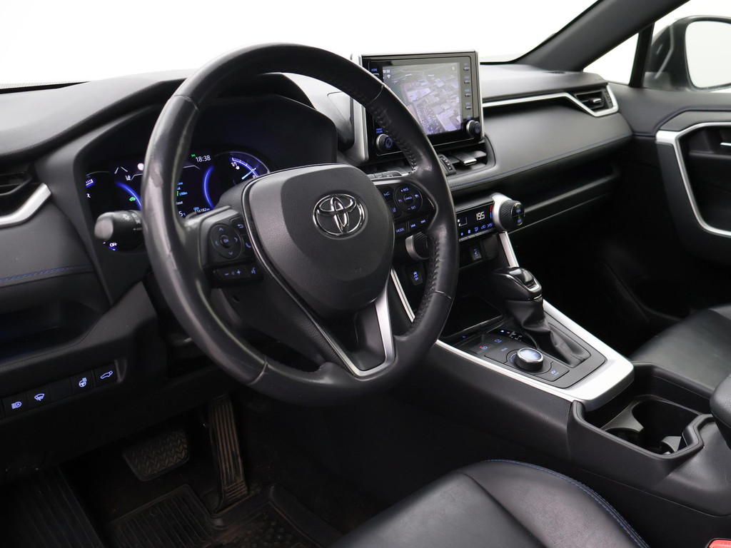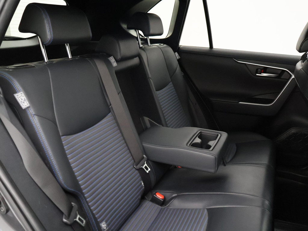 Super complete RAV4 Hybrid 2.5 Automaat 222 PK AWD vierwielaandrijving met 1650 kg trekgewicht op kenteken, Volledig Toyota dealer onderhouden, Bi-Tone uitvoering Donkergrijs + Zwart dak, zwarte buitenspiegels en zwarte 18 inch velgen, Zwart met blauw half leder interieur, Stoelverwarming, Stuurwielverwarming, Achteruitrijcamera, Apple Carplay / Android Auto appstreaming Google Maps, Flitsmeister, Spotify, Whatsapp etc, Privacy glass, Adaptive cruise control, Lijnassistentie, Climate control, Bluetooth met audiostreaming, Verwarmde buitenspiegels, Elektrische achterklep, DAB+ digitale radio, Elektrische stoelverstelling, Parkeersensoren voor + achter, Full LED koplampen, LED achterlichten, Elektrische voorruitverwarming,