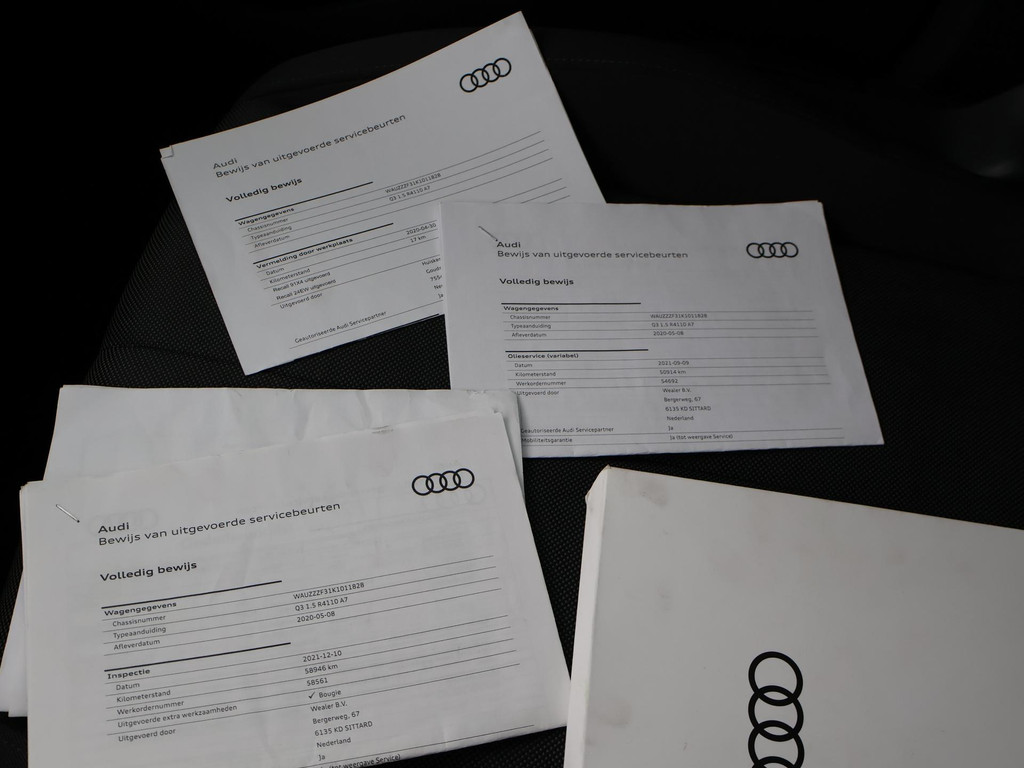 Origineel Nederlandse en eerste eigenaar auto, BTW verrekenbaar, Audi dealer onderhouden, 35 TFSI met de 1.5 TSI 150 PK Automaat, Mythoszwart metallic, Zwart interieur, Virtual cockpit / digitale tellers met navigatie kaartweergave modus tussen de tellers of beeldvullend en diverse andere weergavemogelijkheden zoals audio. Privacy glass, 18 inch lichtmetalen velgen, Elektrische achterklep, Full LED koplampen, LED achterlichten, Parkeersensoren, Dodehoek assistentie, Vermoeidheidsherkenning, Apple Carplay / Android Auto appstreaming Google Maps, Flitsmeister, Spotify, Whatsapp etc, Leder stuurwiel multifunctioneel, Cruise control, Matrix LED koplampen, LED achterlichten, Middenarmsteun.