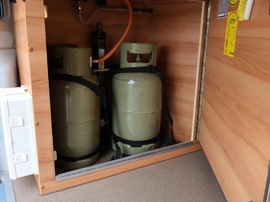 - Twee grote eenpersoonsbedden (met bedzijde van 2 meter) achterin voor in en uitstap gemak ook makkelijk te gebruiken als tweepersoonsbed
