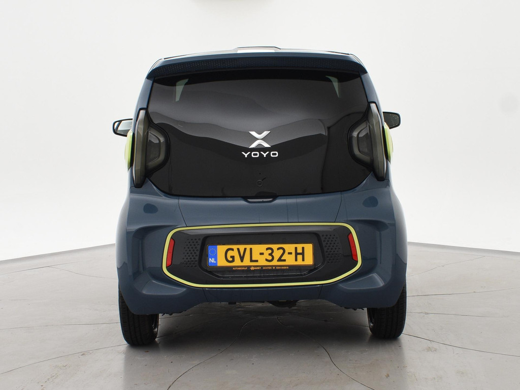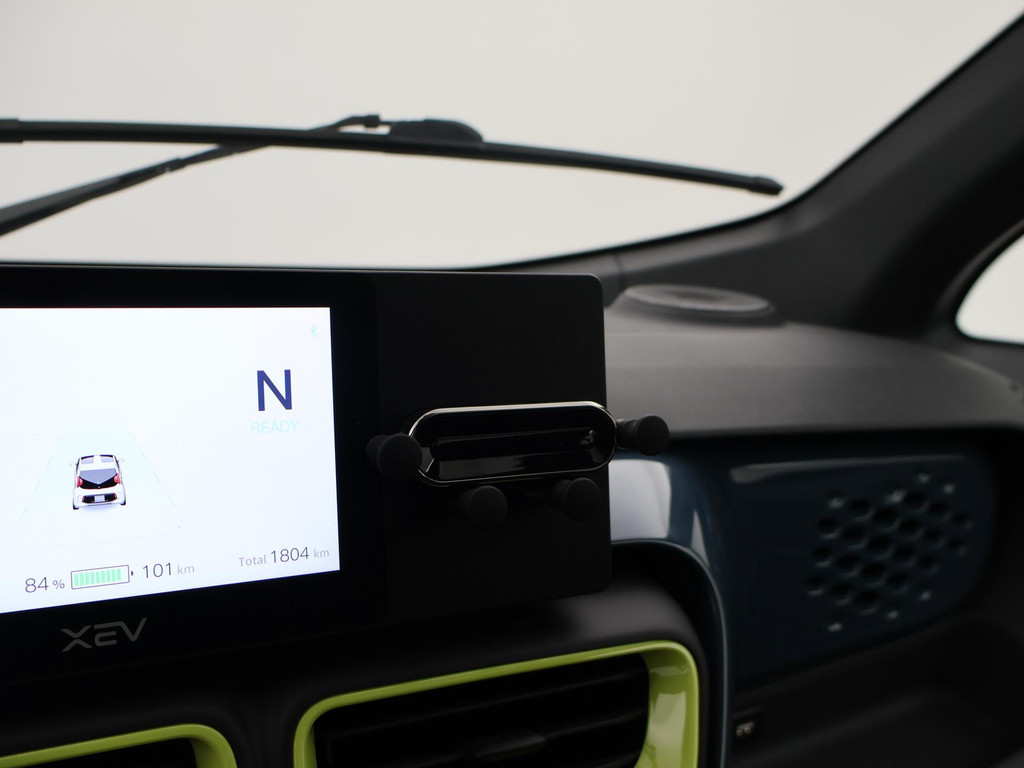 XEV Yoyo van 12-2024 met slechts 1.804 km in het Midnight Blue met Fresh Lime accenten, XEV komt uit Italië uit Venetië. Volledig elektrisch, Automaat, 153 km Actieradius, Topsnelheid 90 km/h, Slechts 8 euro wegenbelasting per kwartaal. Panoramadak, Privacy glass achter, Airco, Speakers met bluetooth verbinding, Digitale cockpit, Leder stuurwiel, Middenarmsteun, LED dagrijverlichting, LED achterlichten, USB lader, Smartphone houder, Stuurbekrachtiging, ABS, Keyless-entry, Elektrische ramen, 180 liter bagageruimte, Schijfremmen voor en achter, Telefoon op de foto's is niet inbegrepen, RDW nieuwprijs 15.990 euro.