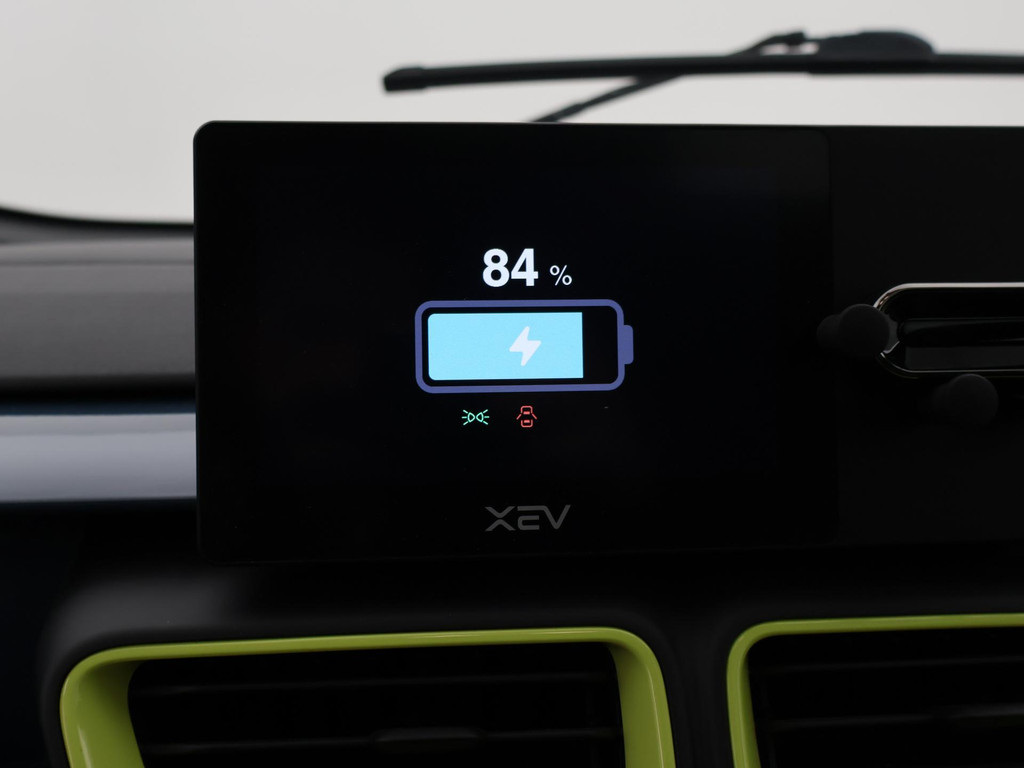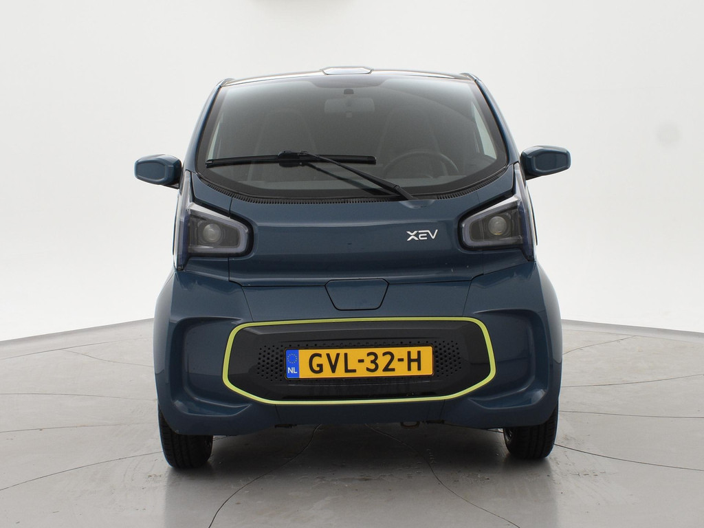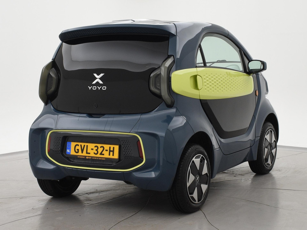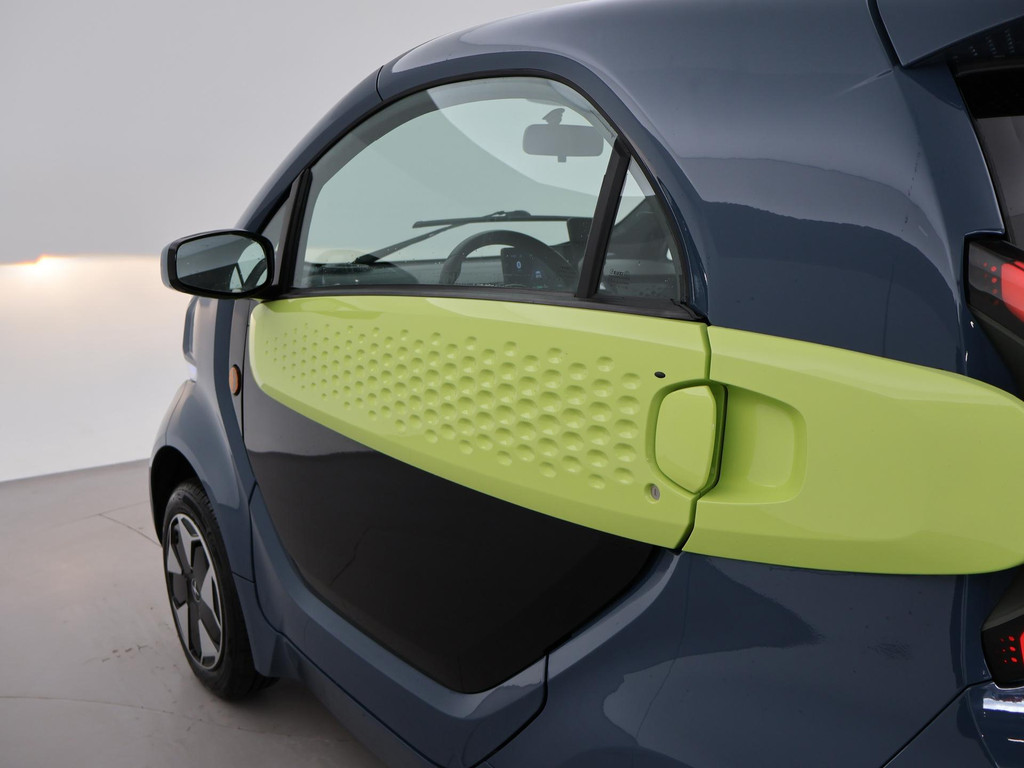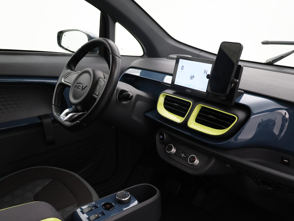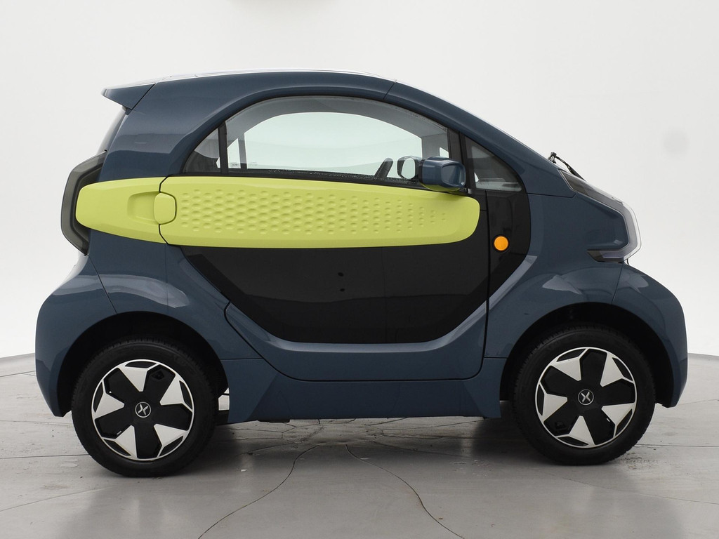 XEV Yoyo van 12-2024 met slechts 1.804 km in het Midnight Blue met Fresh Lime accenten, XEV komt uit Italië uit Venetië. Volledig elektrisch, Automaat, 153 km Actieradius, Topsnelheid 90 km/h, Slechts 8 euro wegenbelasting per kwartaal. Panoramadak, Privacy glass achter, Airco, Speakers met bluetooth verbinding, Digitale cockpit, Leder stuurwiel, Middenarmsteun, LED dagrijverlichting, LED achterlichten, USB lader, Smartphone houder, Stuurbekrachtiging, ABS, Keyless-entry, Elektrische ramen, 180 liter bagageruimte, Schijfremmen voor en achter, Telefoon op de foto's is niet inbegrepen, RDW nieuwprijs 15.990 euro.