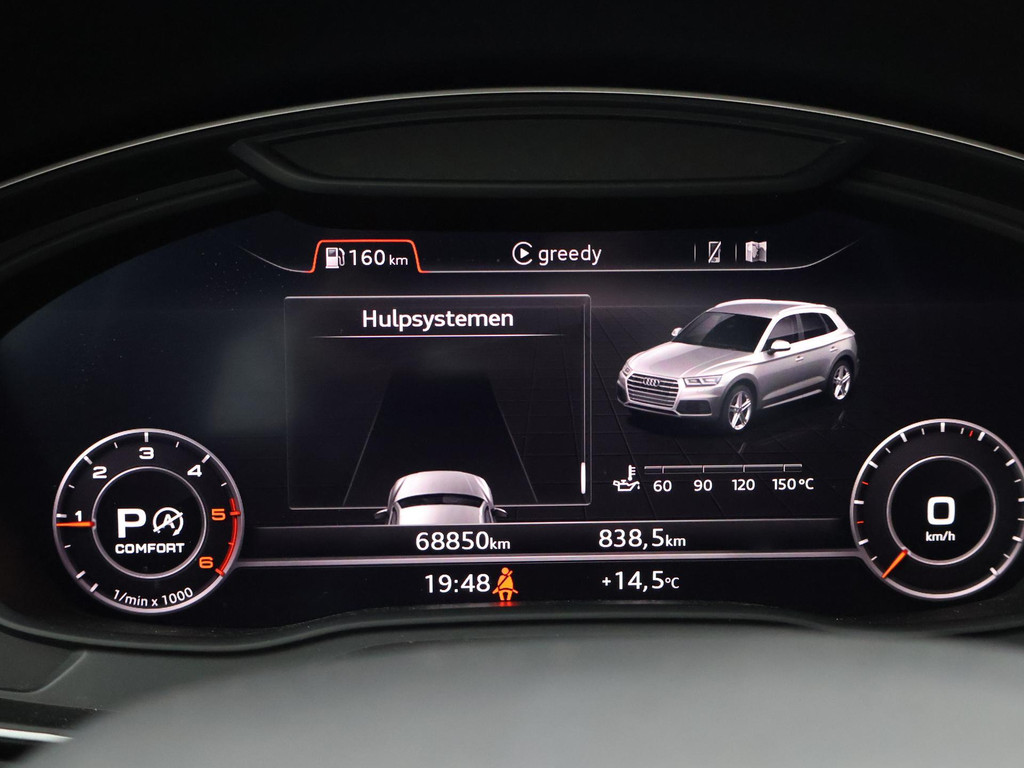 Q5 40 TDI met de 2.0 TDI Quattro automaat met 190 PK origineel vanaf fabriek, Vierwielaandrijving, Slechts 68.850 km gereden, Gletsjerwit metallic exterieurkleur / wit parelmoer met privacy glass en 18 inch velgen, Virtual cockpit digitale cockpit met verschillende tellerweergave mogelijkheden en navigatie kaartweergave tussen de tellers of beeldvullend, Apple Carplay / Android Auto appstreaming Google Maps, Flitsmeister, Spotify, Whatsapp etc, Full LED koplampen, LED achterlichten, Stoelverwarming, Leder stuurwiel multifunctioneel, Cruise control, Bluetooth met audiostreaming, Climate control, Parkeersensoren voor + achter, Audi Drive Select regelbare rij-eigenschappen, Keyless-drive, Verwarmde buitenspiegels.