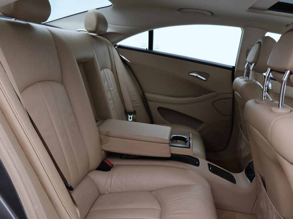 Origineel Nederlandse auto, CLS 350 V6 272 PK Automaat in het Indium Gray metallic met beige volledig leder interieur, Origineel onderhoudsboekje aanwezig, Elektrisch schuif/kanteldak, Harman/Kardon premium sound, Navigatie, Xenon verlichting, 4-zone Climate control met aparte display en bediening achterin, Cruise control, Parkeersensoren voor + achter, Buitenspiegels elektrisch inklapbaar.