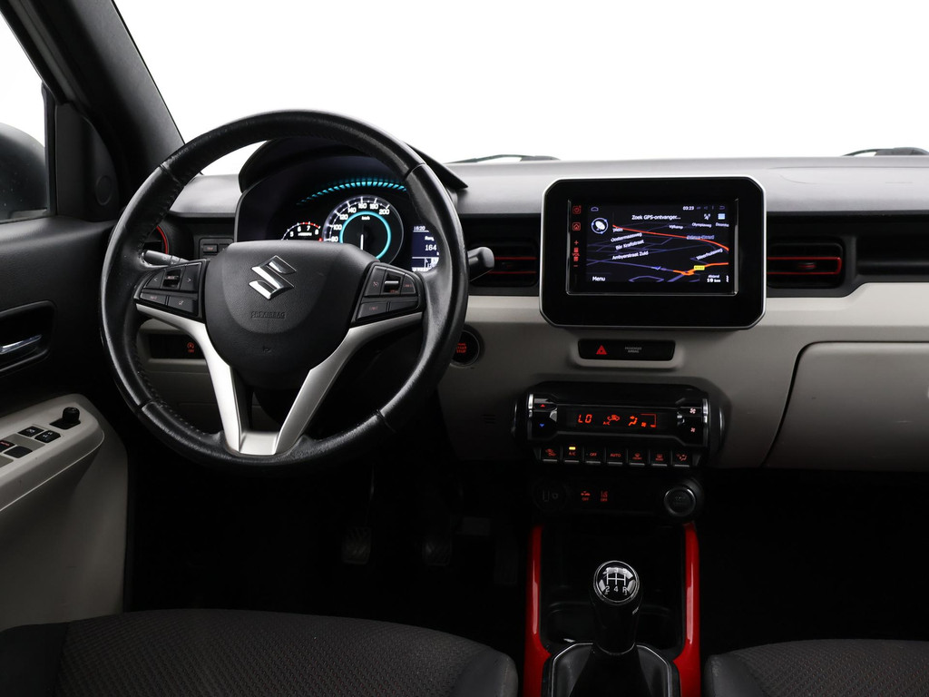 1.2 Smart Hybrid in de Stijl uitvoering, Wit met rode striping en rode interieur accenten, Achteruitrijcamera, Navigatie, Climate control, Keyless-entry en keyless-drive, Lichtmetalen velgen, Elektrische ramen voor + achterin, Cruise control, Het interieur heeft wat verfsporen.