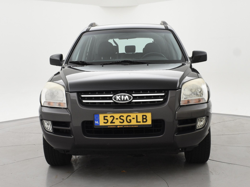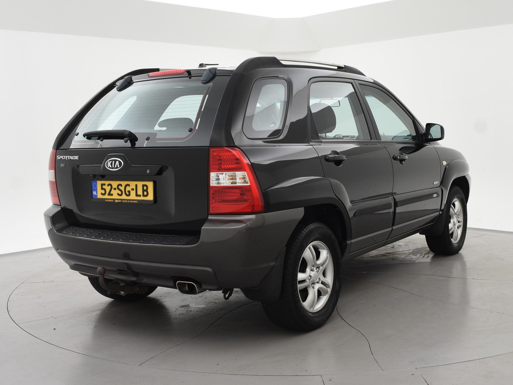 Origineel Nederlandse Sportage 2.0 CVVT 140 PK handgeschakeld 4WD vierwielaandrijving (vrij zeldzaam i.c.m. met de 2.0 4-cilinder motor), Black Cherry metallic exterieurkleur, Trekhaak met 1600 kg trekgewicht op kenteken, Climate control, Navigatie, Cruise control, Leder stuurwiel, Zwart half leder interieur.